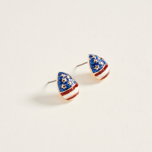 0.5 In Glitter American USA Flag Egg Teardrop Post Earrings