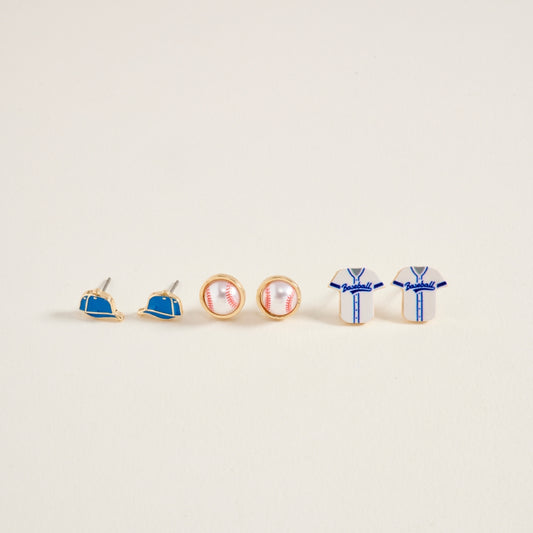 0.5 In Dainty Baseball Hat Cap Jersey 3PC Set Post Earrings