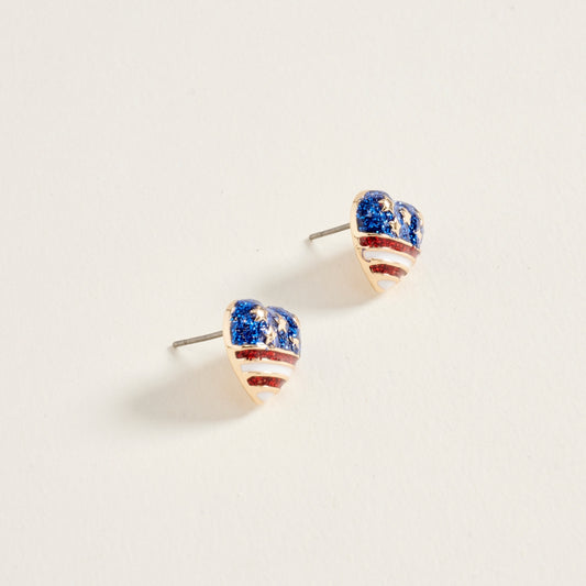 0.5 In Glitter Heart Shaped American USA Flag Post Earrings