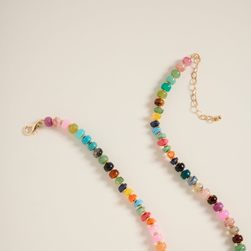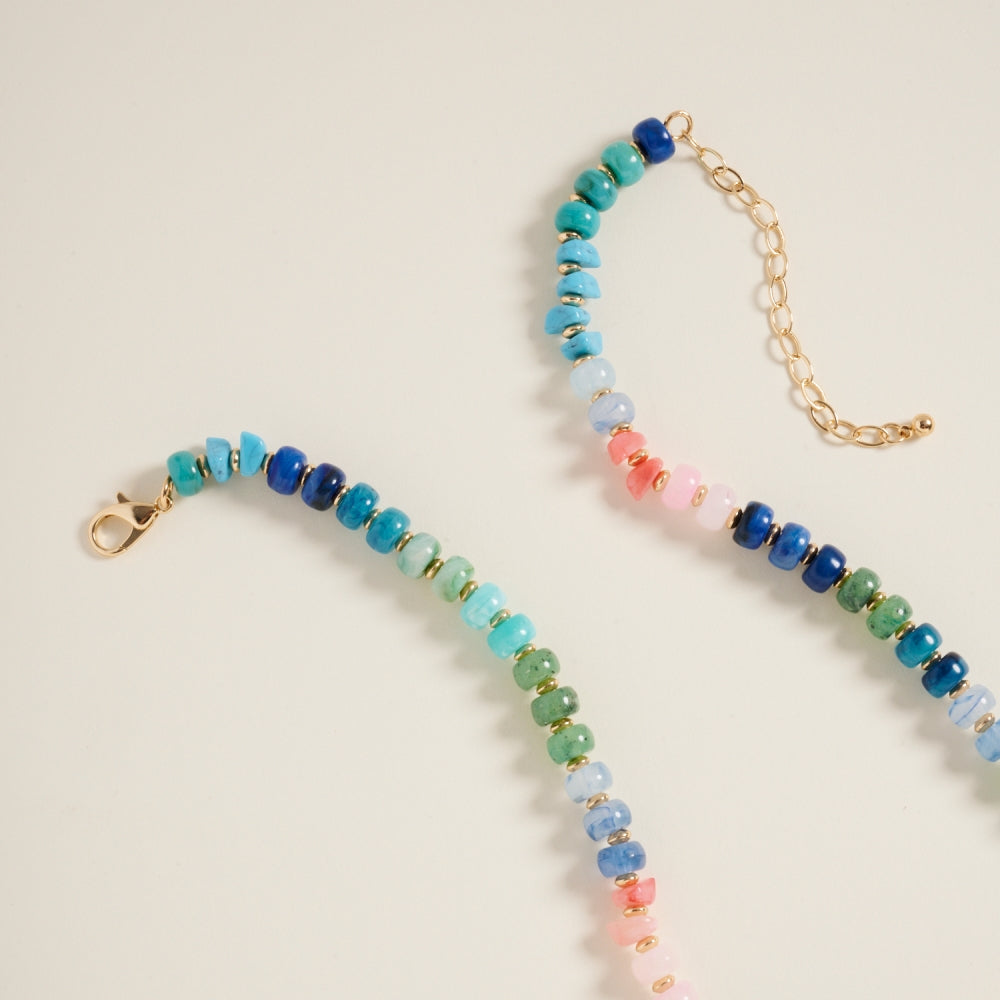 A beautiful blend of marbled and ombre tones, this 17-inch beaded necklace features a charming pendant that adds a refined, modern touch to any outfit.