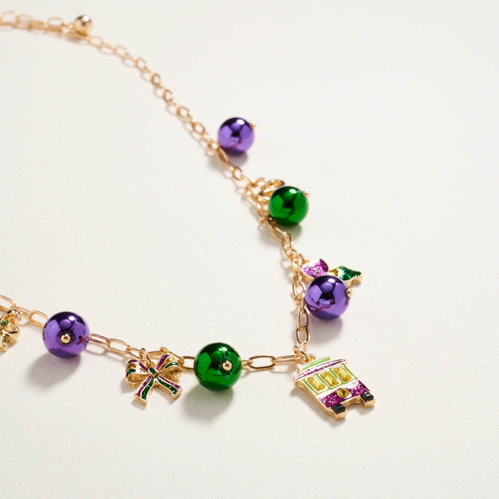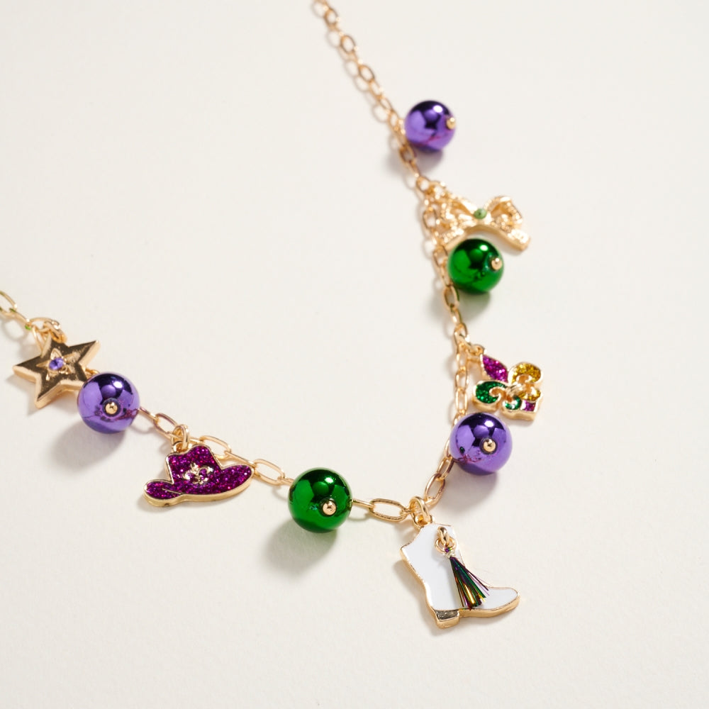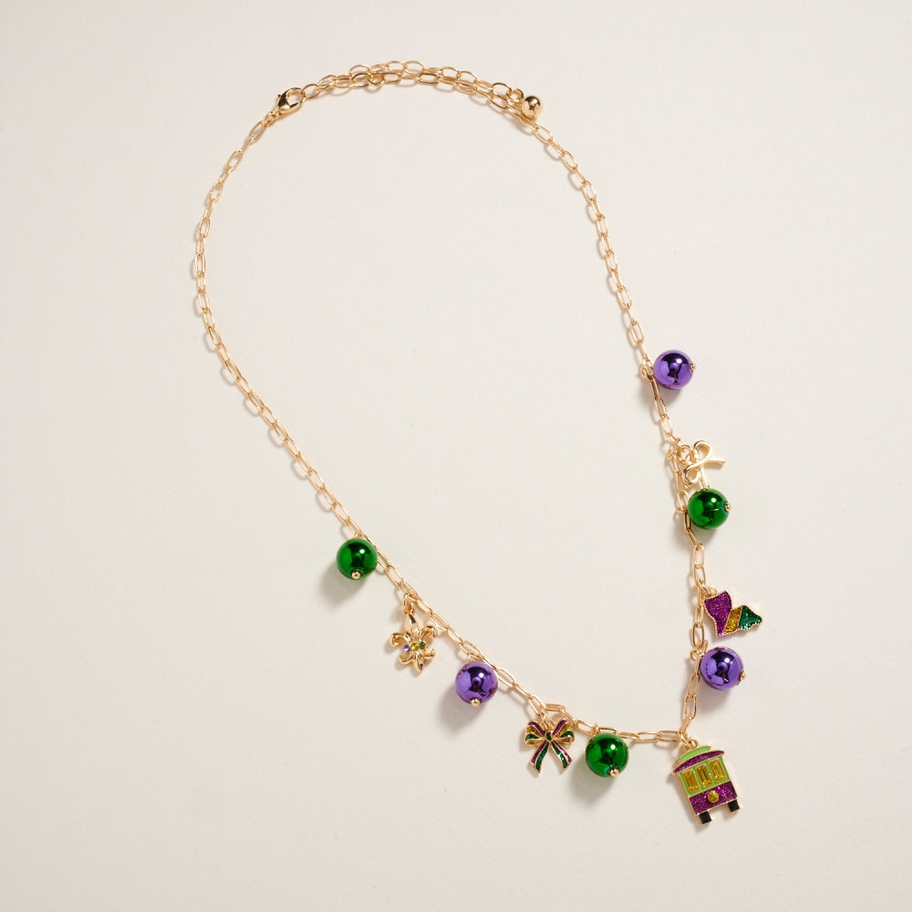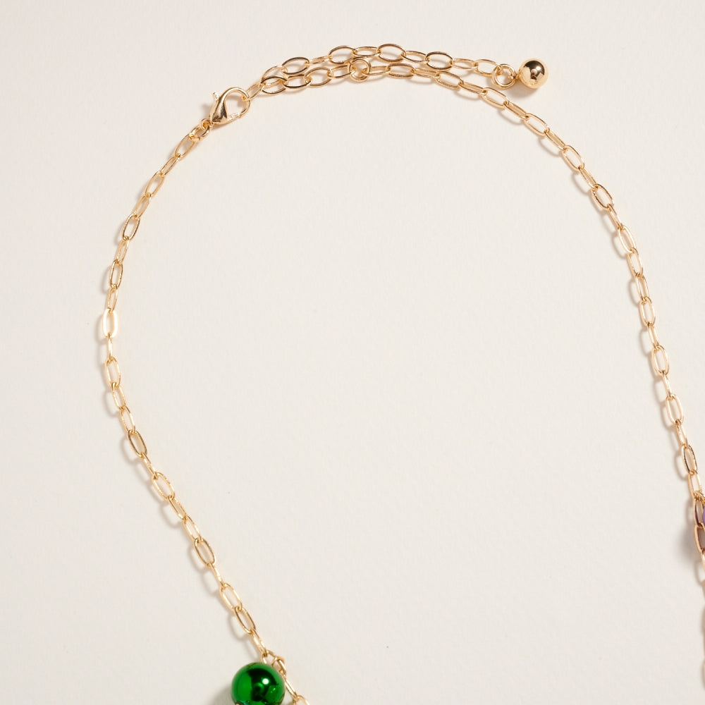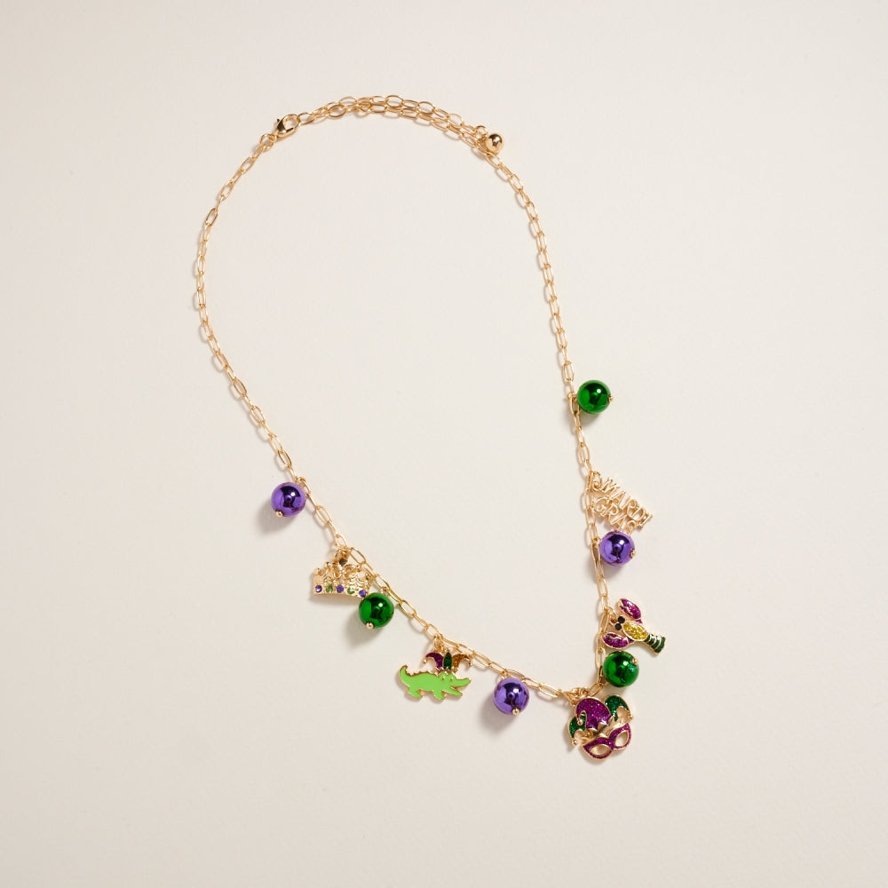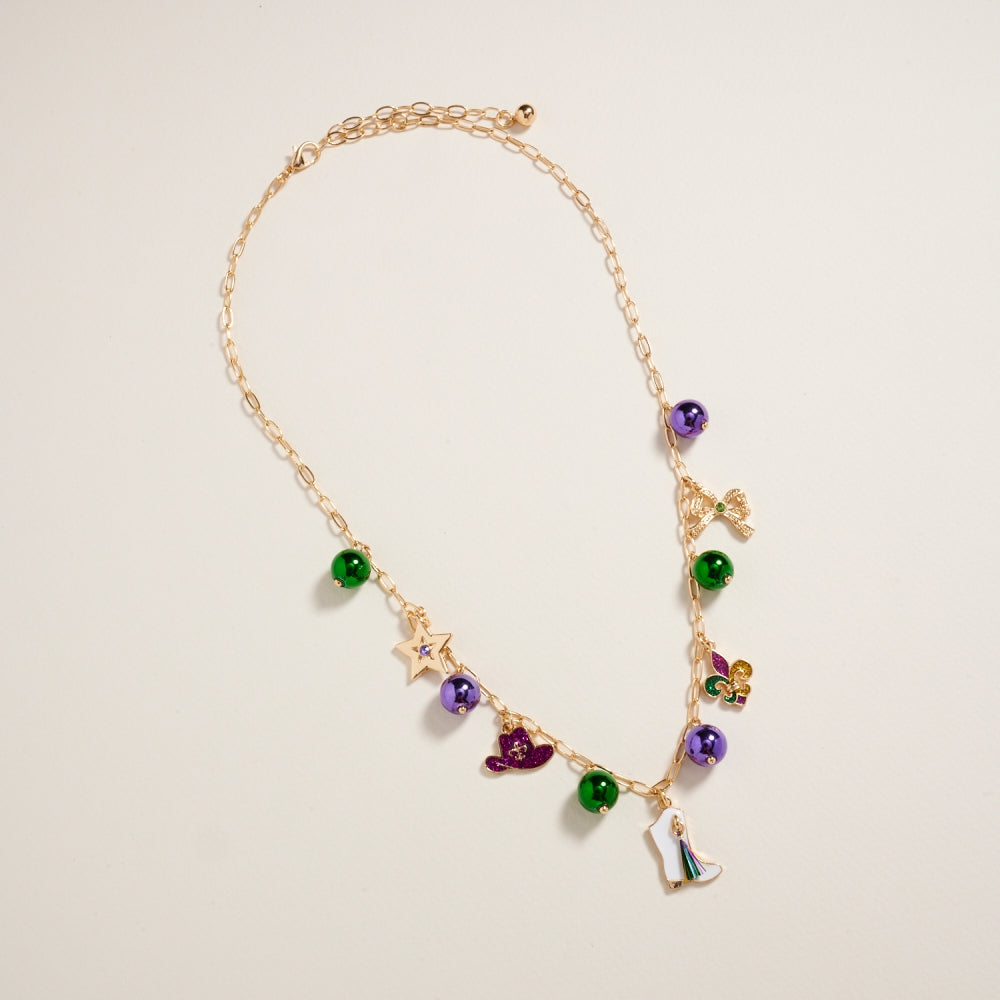 Celebrate Mardi Gras in style with this lightweight 18-inch bead chain necklace. Adorned with mixed beads and whimsical charms in iconic carnival colors, it’s an easy way to bring a pop of festive energy to any outfit.