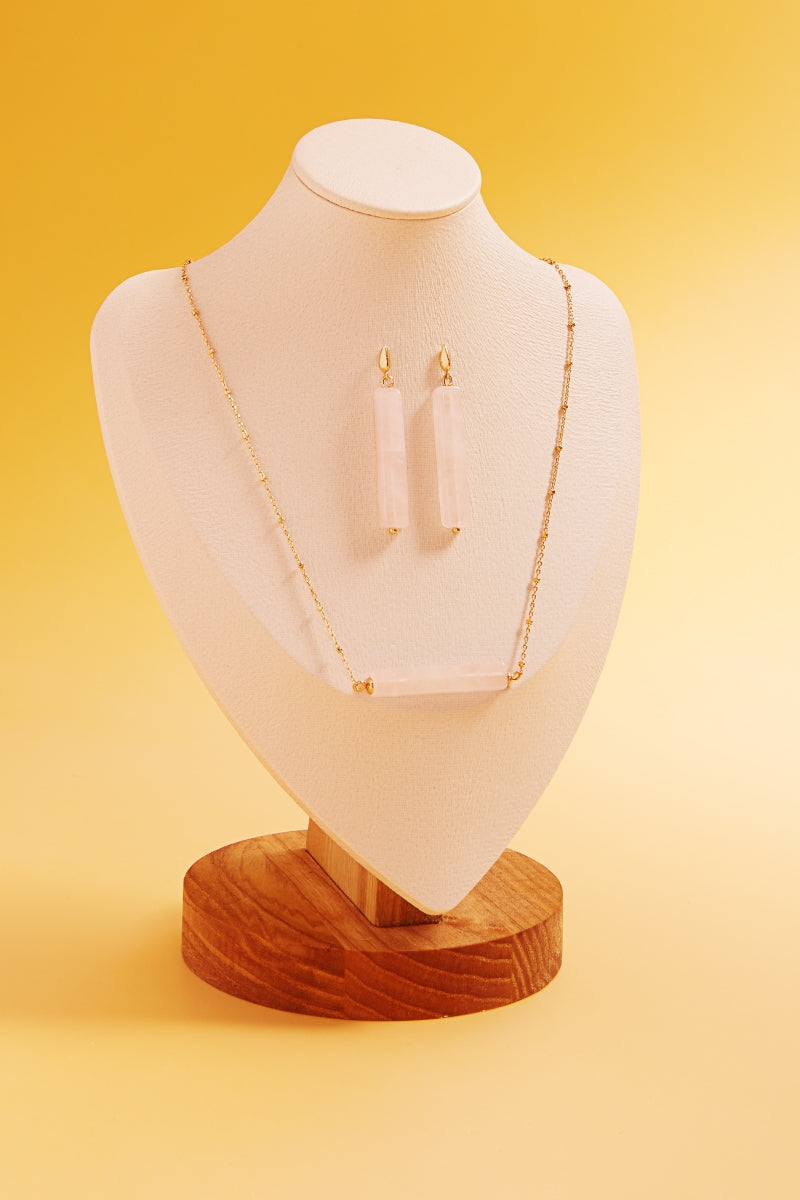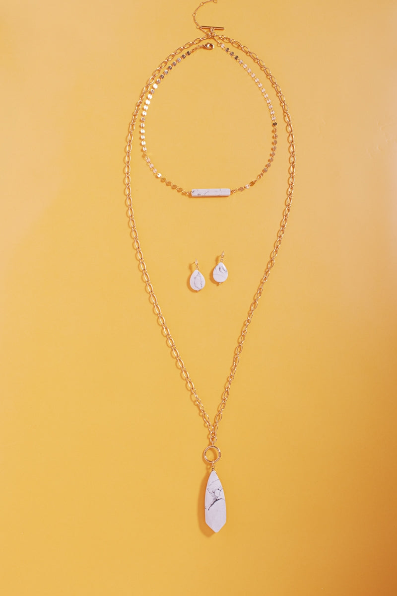 18K Gold Plated Brass Chain 3D Bar Stone Necklace