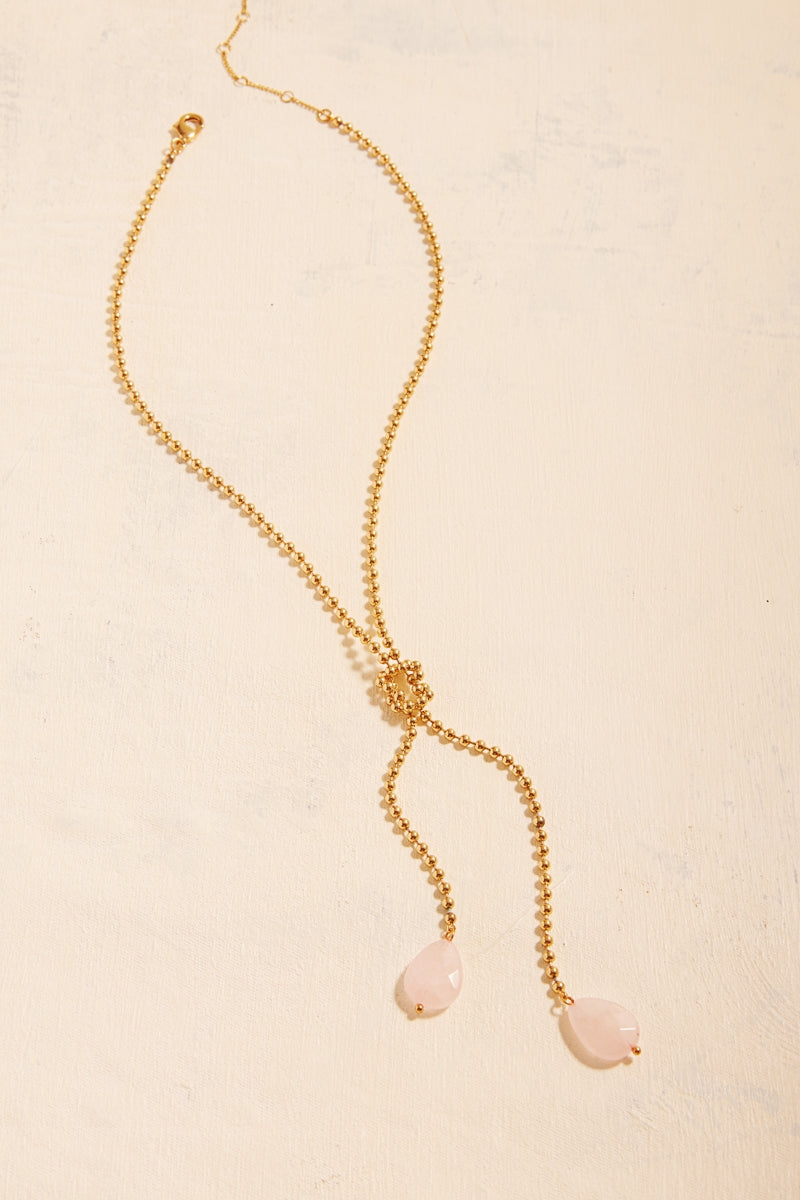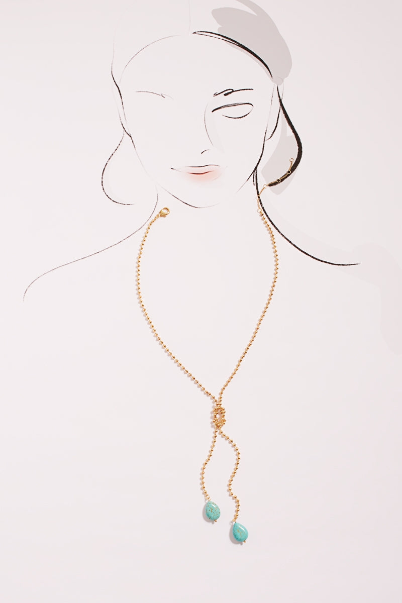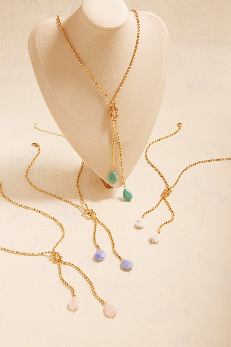 18K Gold Plated Brass Chain W Stone Drop Necklace