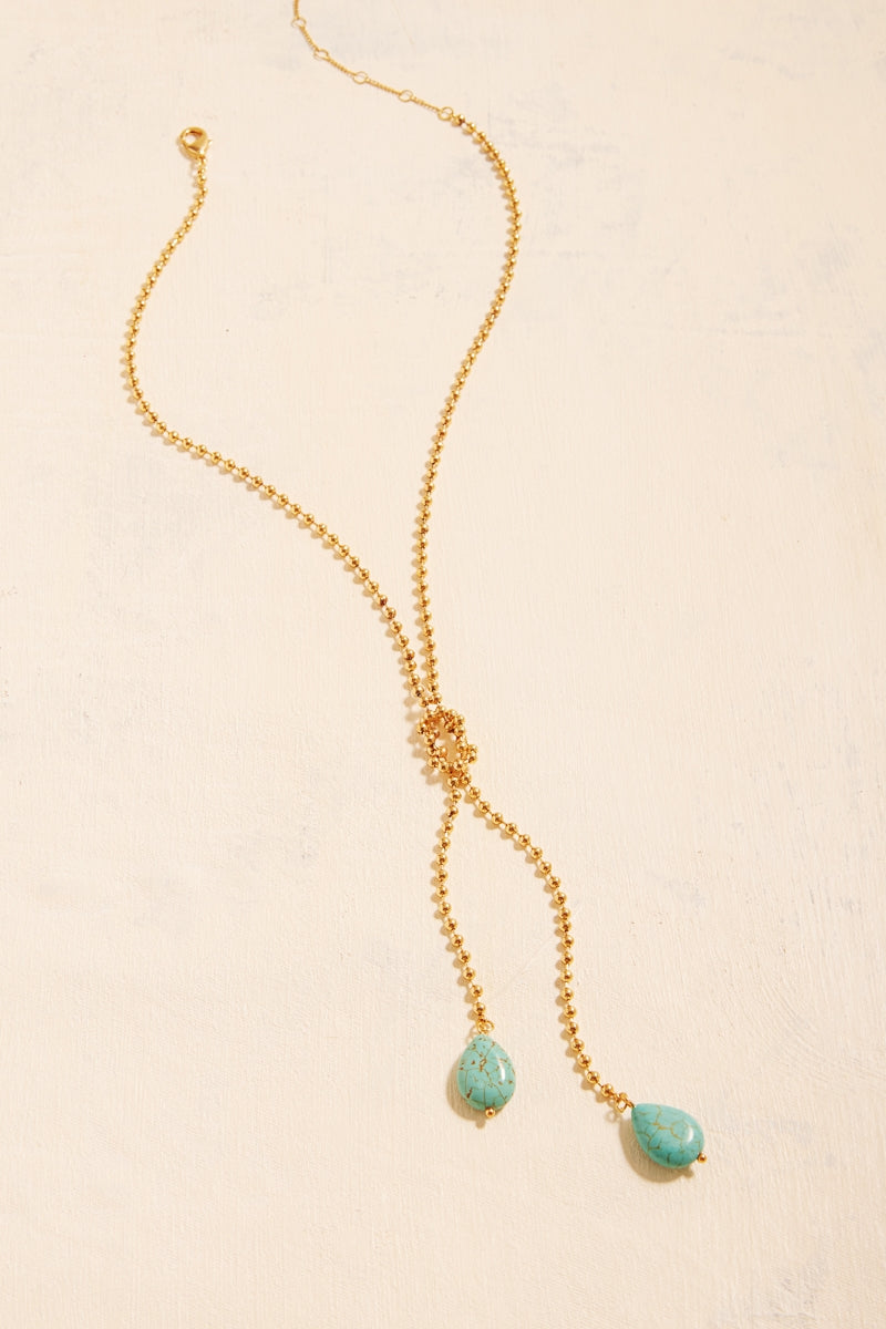 This 18k gold plated brass necklace features a 17 inch chain with a 4 inch drop, accented with a stone Y shape pendant. The elegant design adds the perfect touch of sophistication to any outfit. Upgrade your jewelry collection with this timeless and stylish piece.
