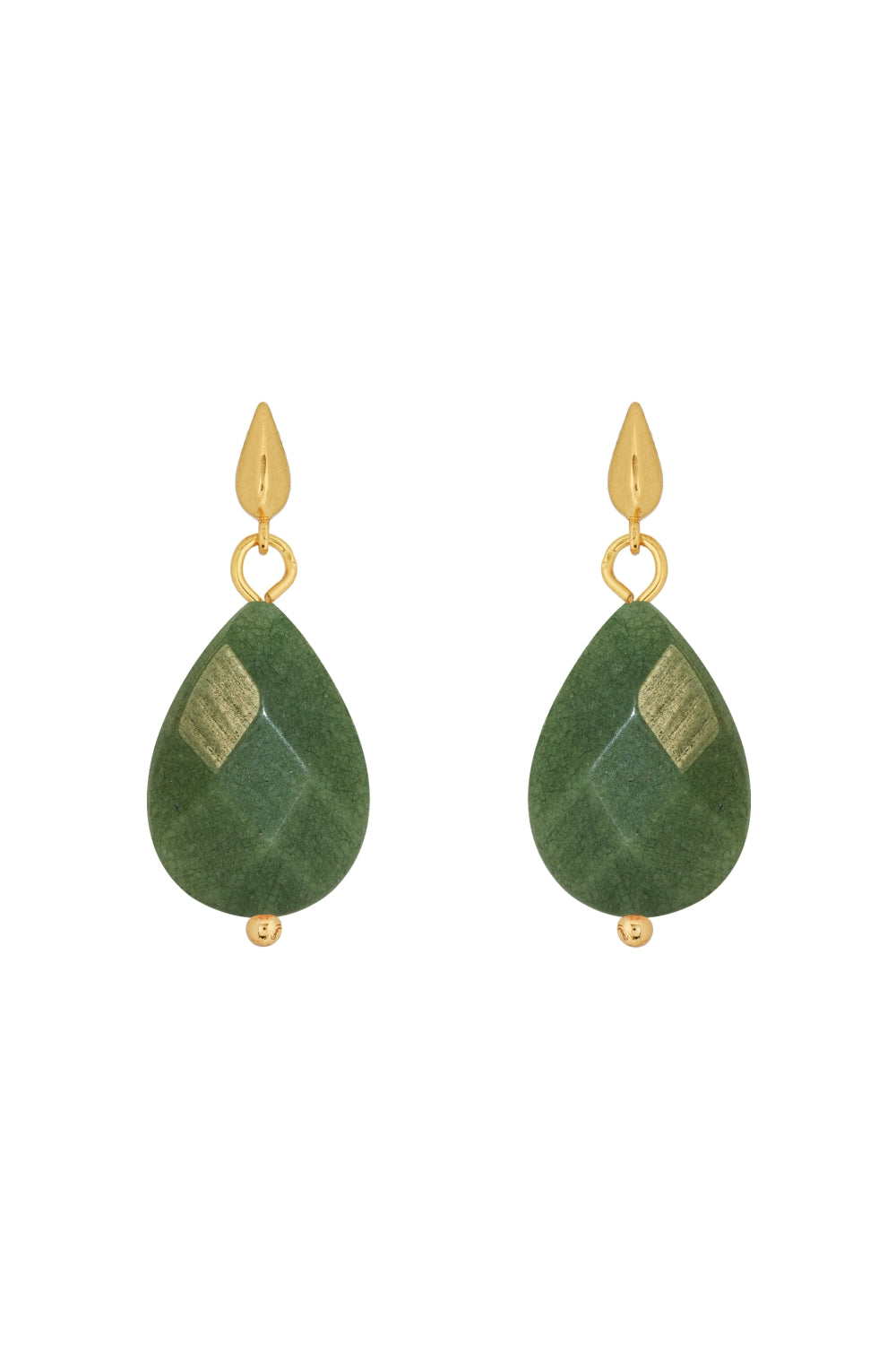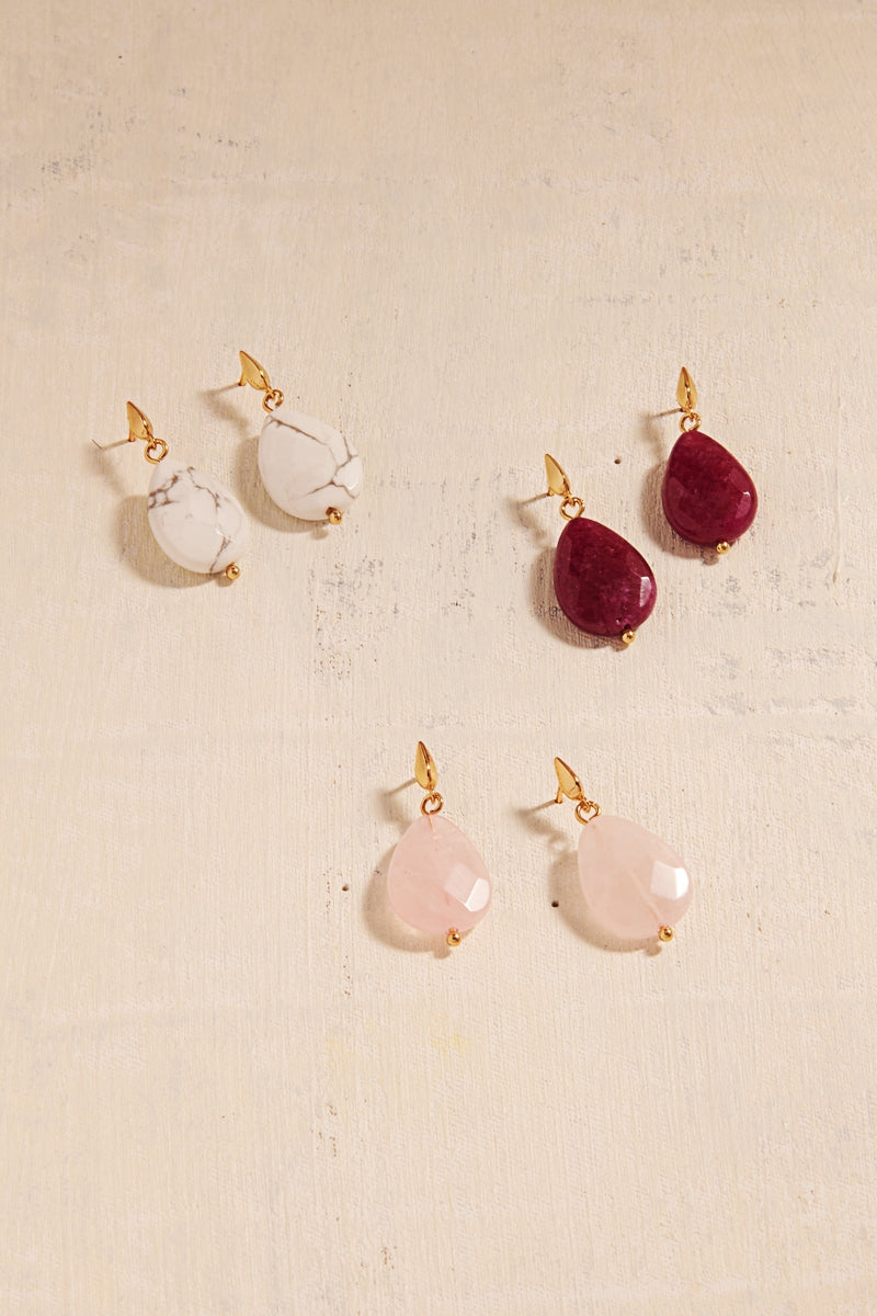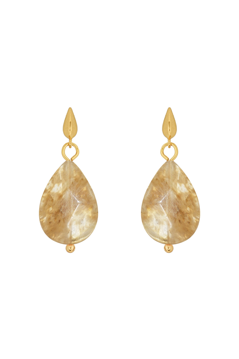 18K Gold Plated Brass Teardrop Stone Post Earrings