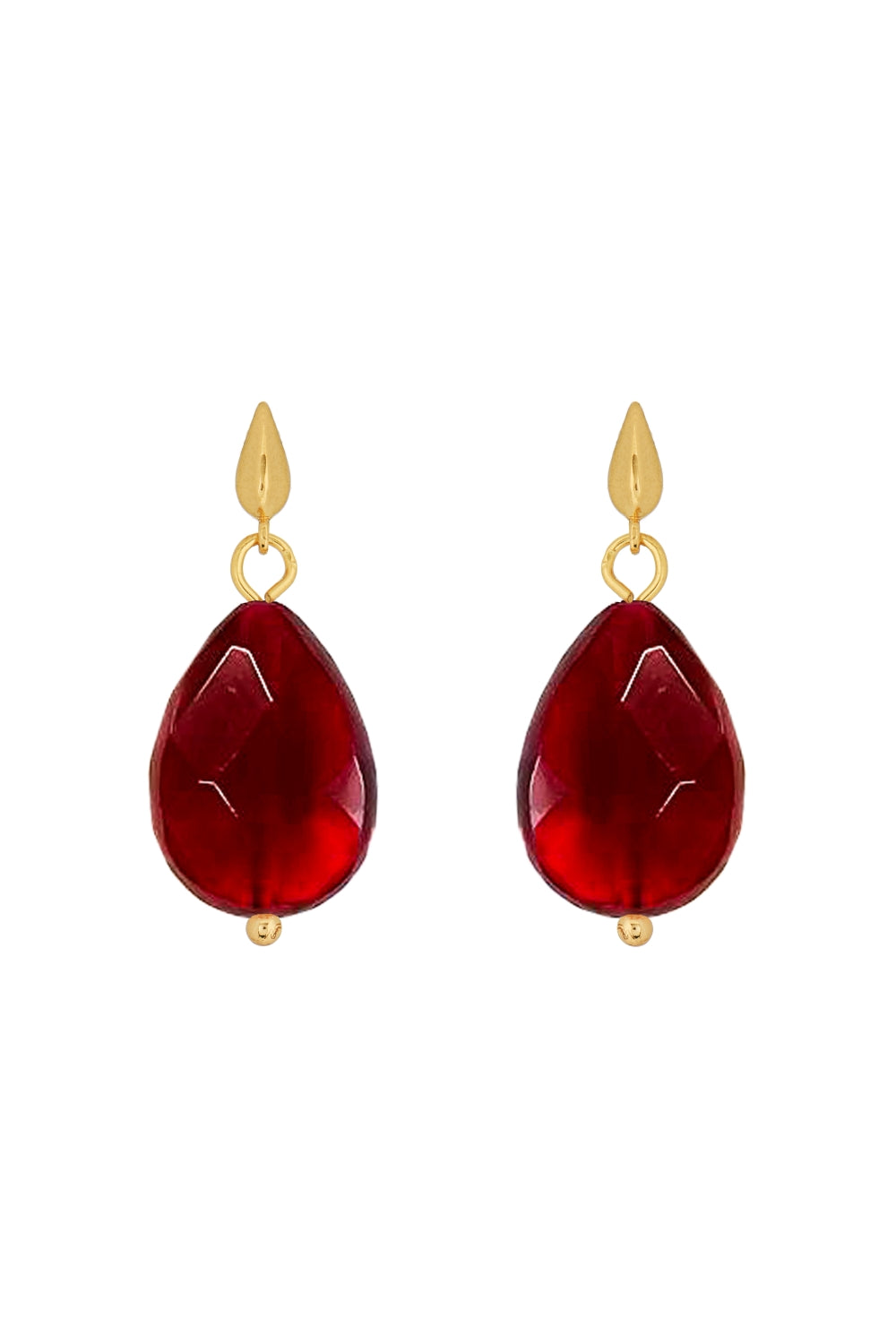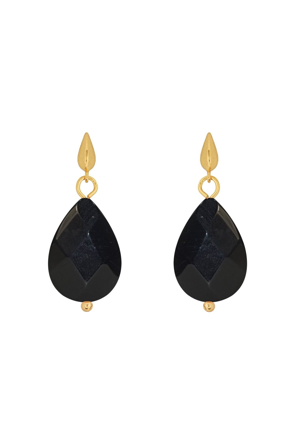 These exquisite earrings feature a 1.25-inch drop with 18K gold-plated brass, highlighting a stunning 13x18mm faceted teardrop-shaped stone. Each stone is precisely cut to enhance light reflection, creating a captivating sparkle that complements the luxurious gold plating.