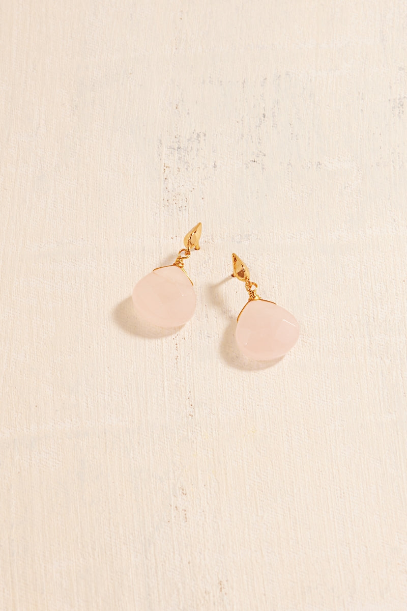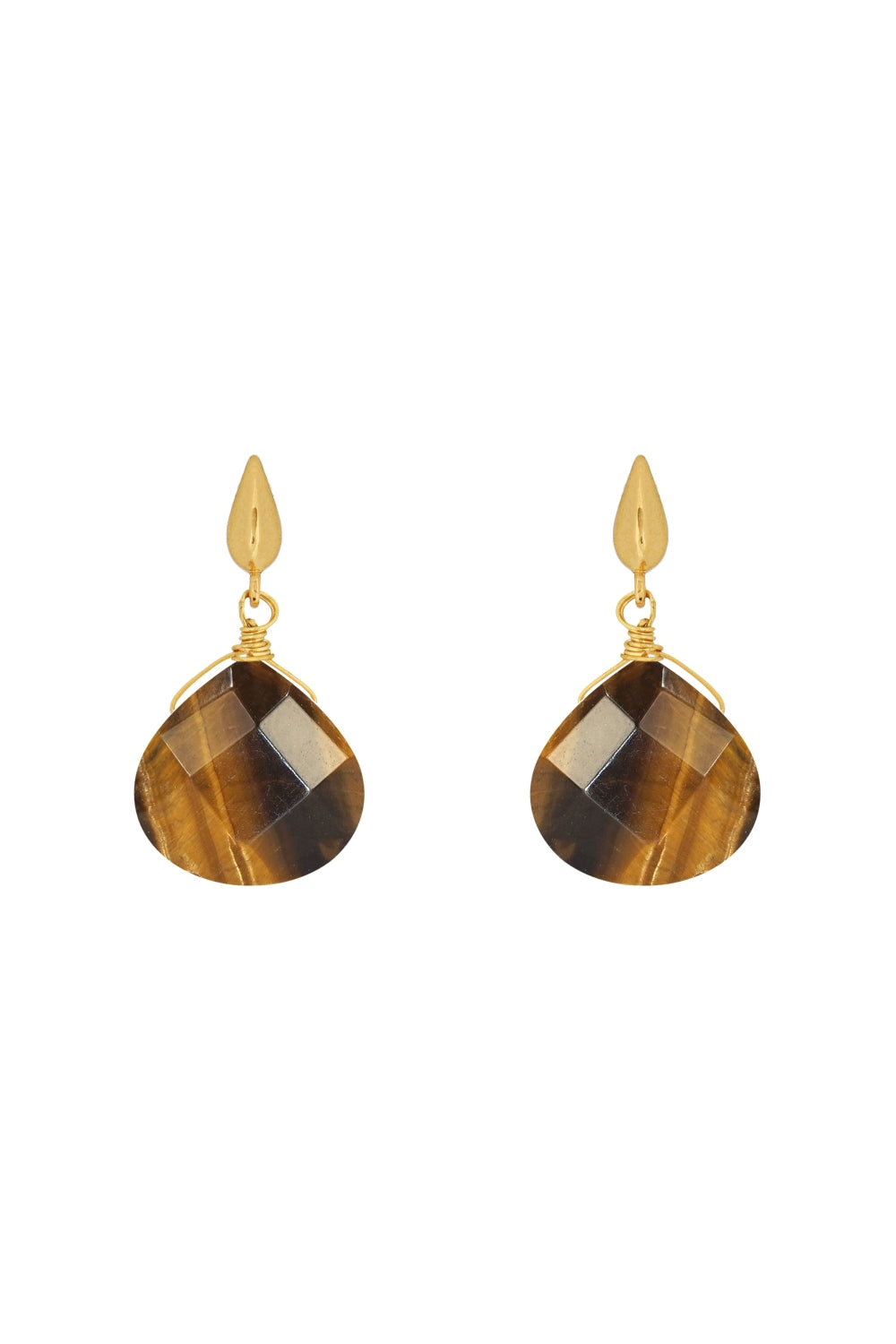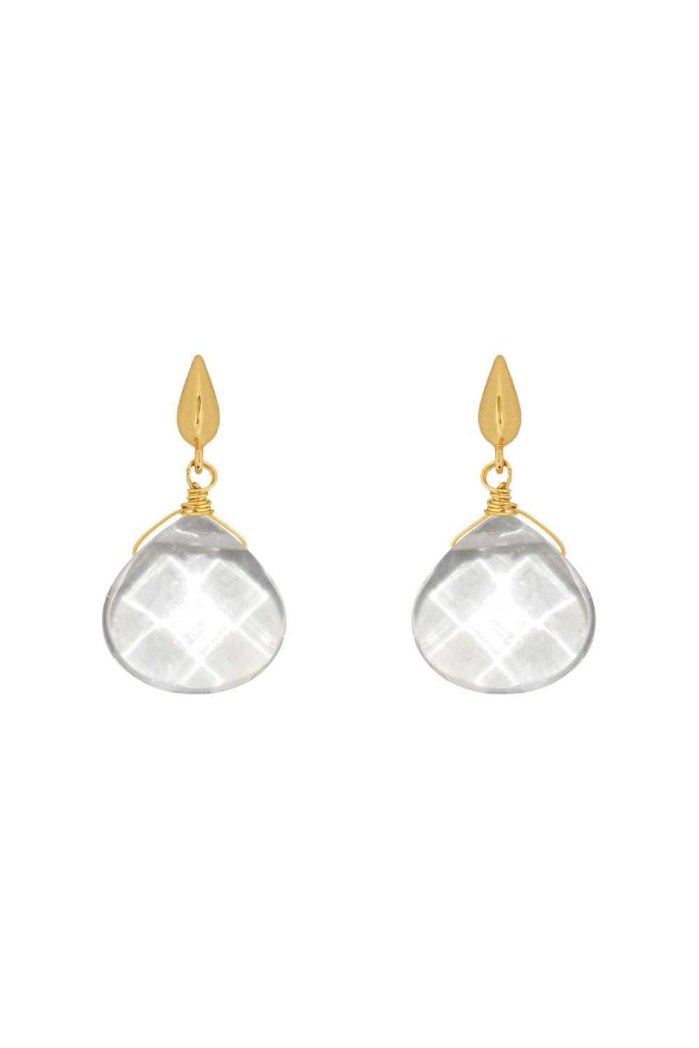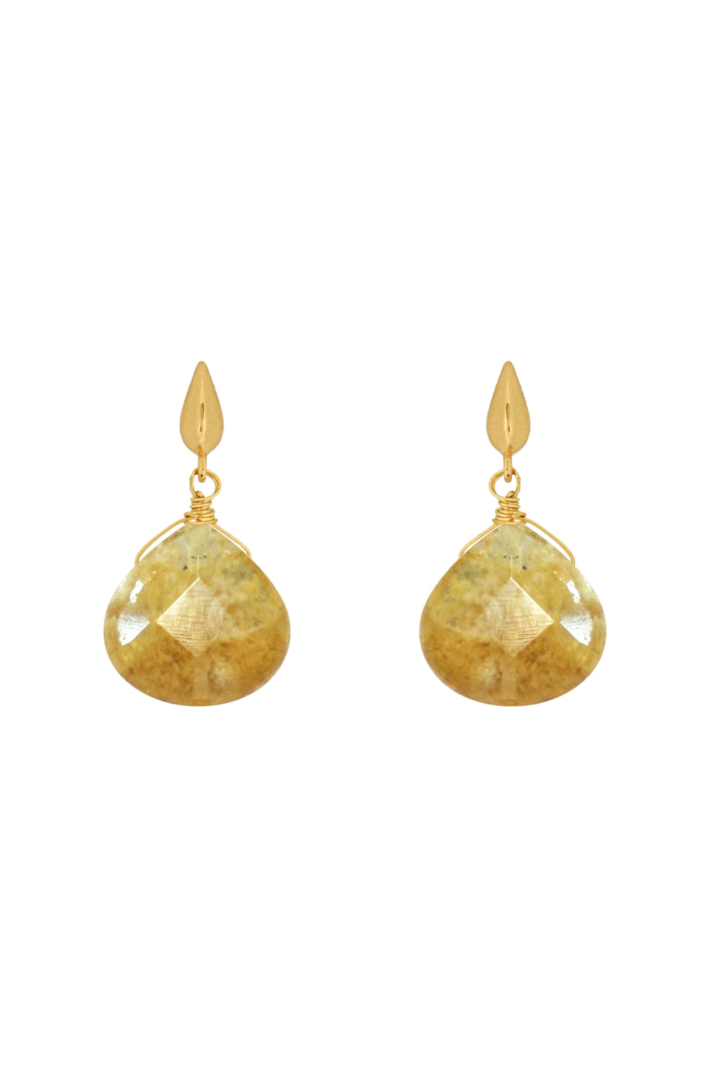 These refined post earrings feature a 1-inch drop with an 18K gold-plated brass setting, accentuating a 13x13mm faceted teardrop-shaped stone. The stone's carefully faceted surface captures light beautifully.
