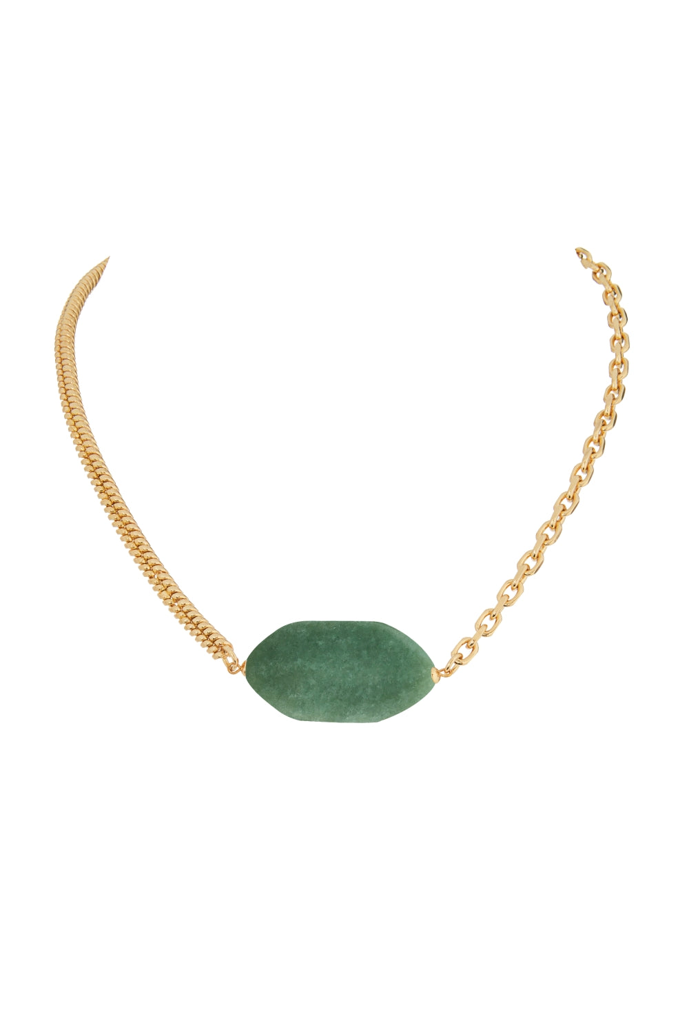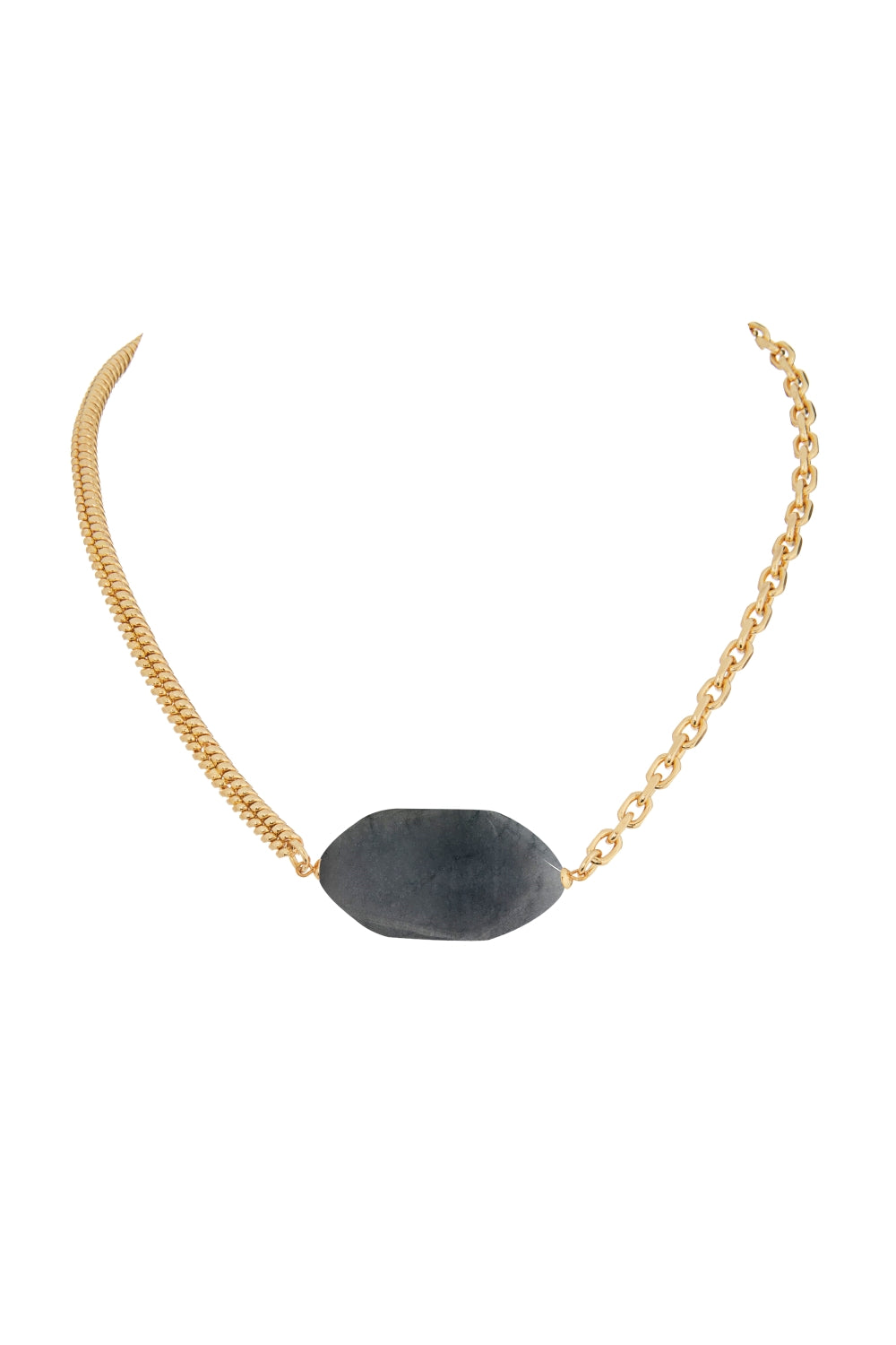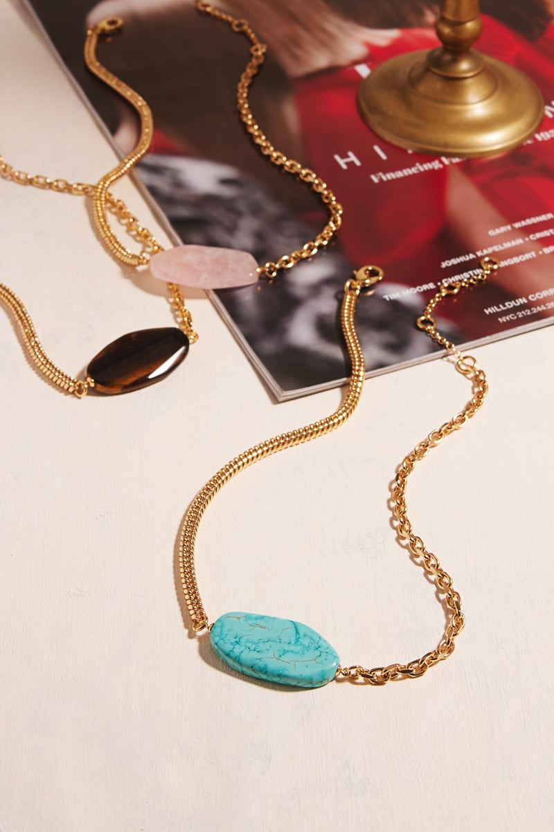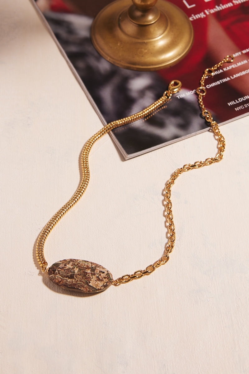 Discover elegance with our 18-inch 18K gold-plated brass chain necklace, featuring a stunning 24x44 mm free-form shaped stone. This short necklace is perfect for adding a unique touch to any outfit, whether for everyday wear or special occasions.