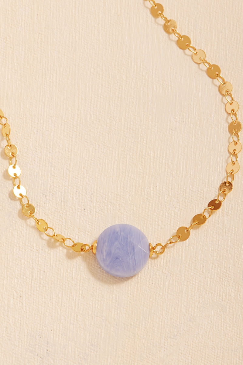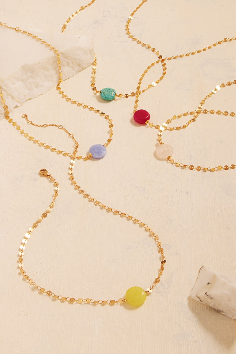 Expertly crafted with 18 karat gold plated brass, this 18-inch chain necklace features a unique rounded square-shaped stone pendant. The combination of high-quality materials and elegant design make this necklace a versatile addition to any jewelry collection. Elevate your style with this stunning piece.