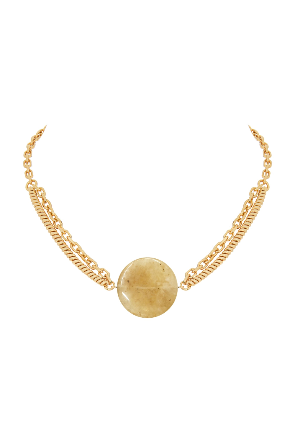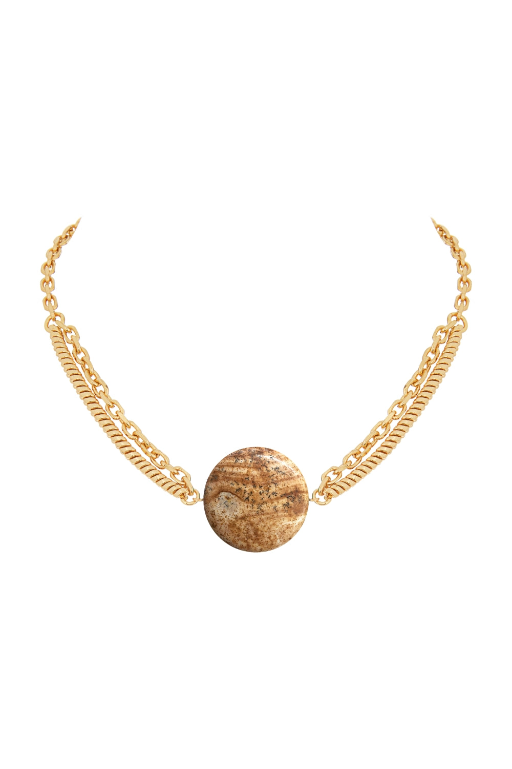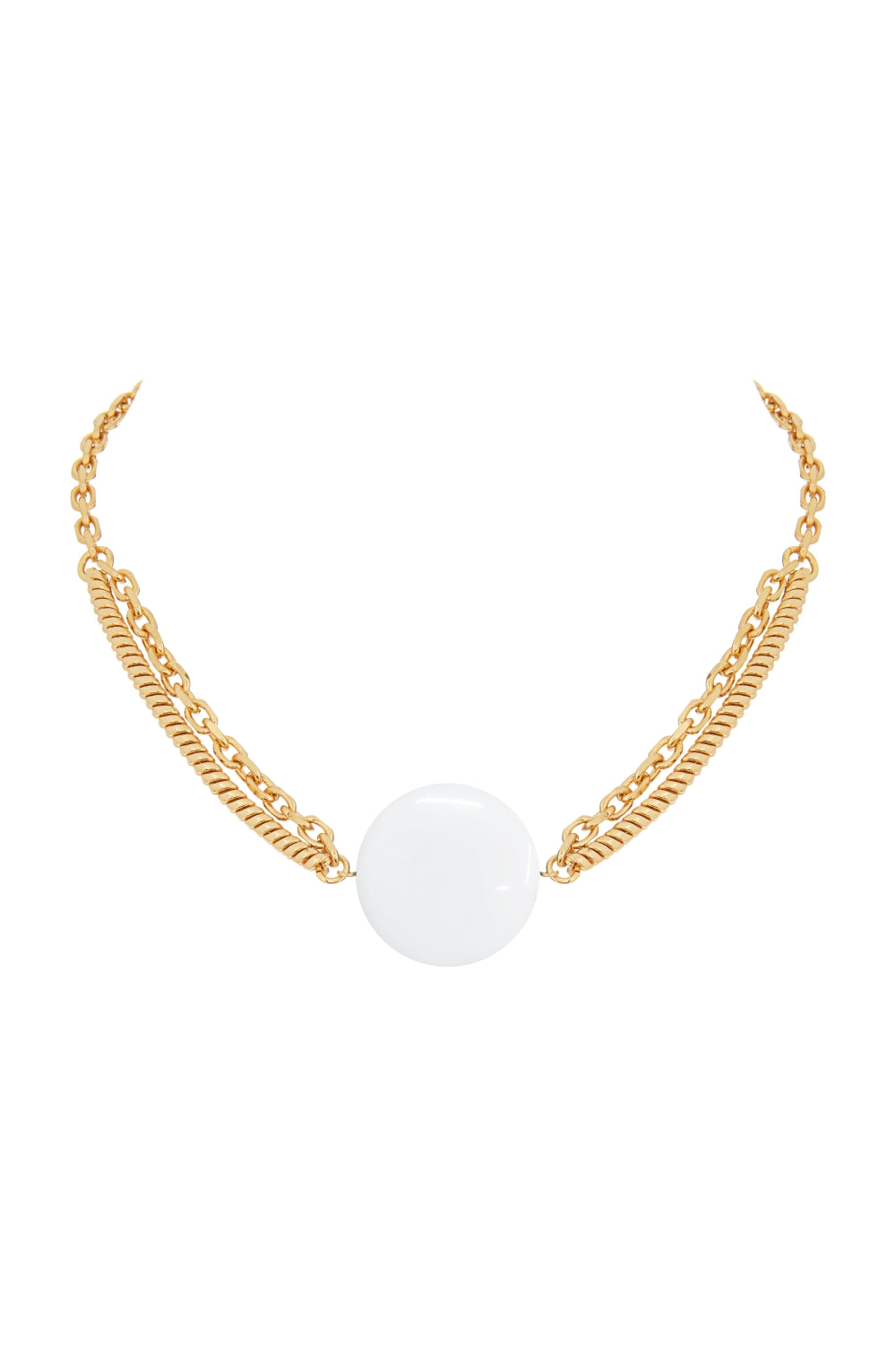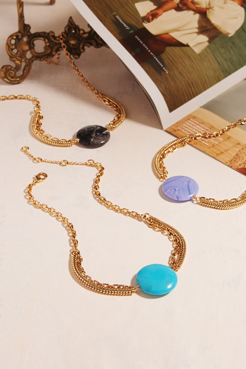 Discover elegance with our 18-inch 18K gold-plated brass chain necklace, adorned with a stunning 35mm smooth round stone. This short necklace is perfect for adding a touch of sophistication to any outfit, whether for a casual day out or a special occasion.