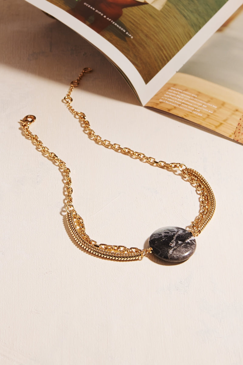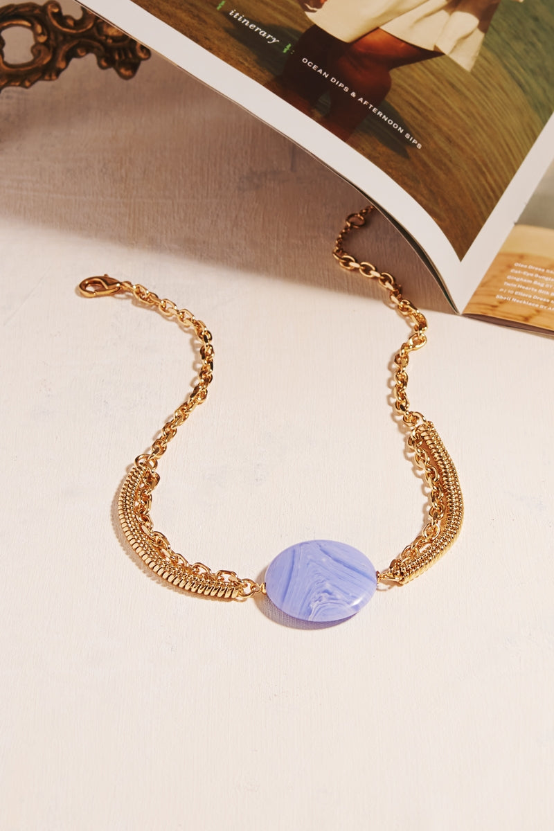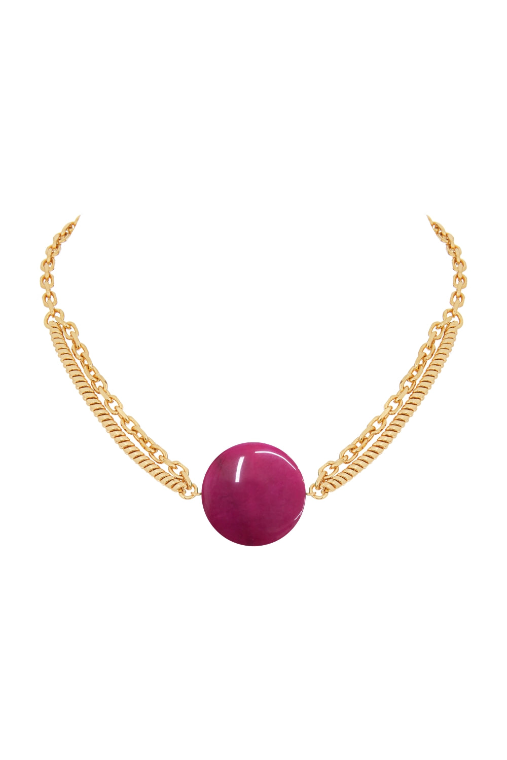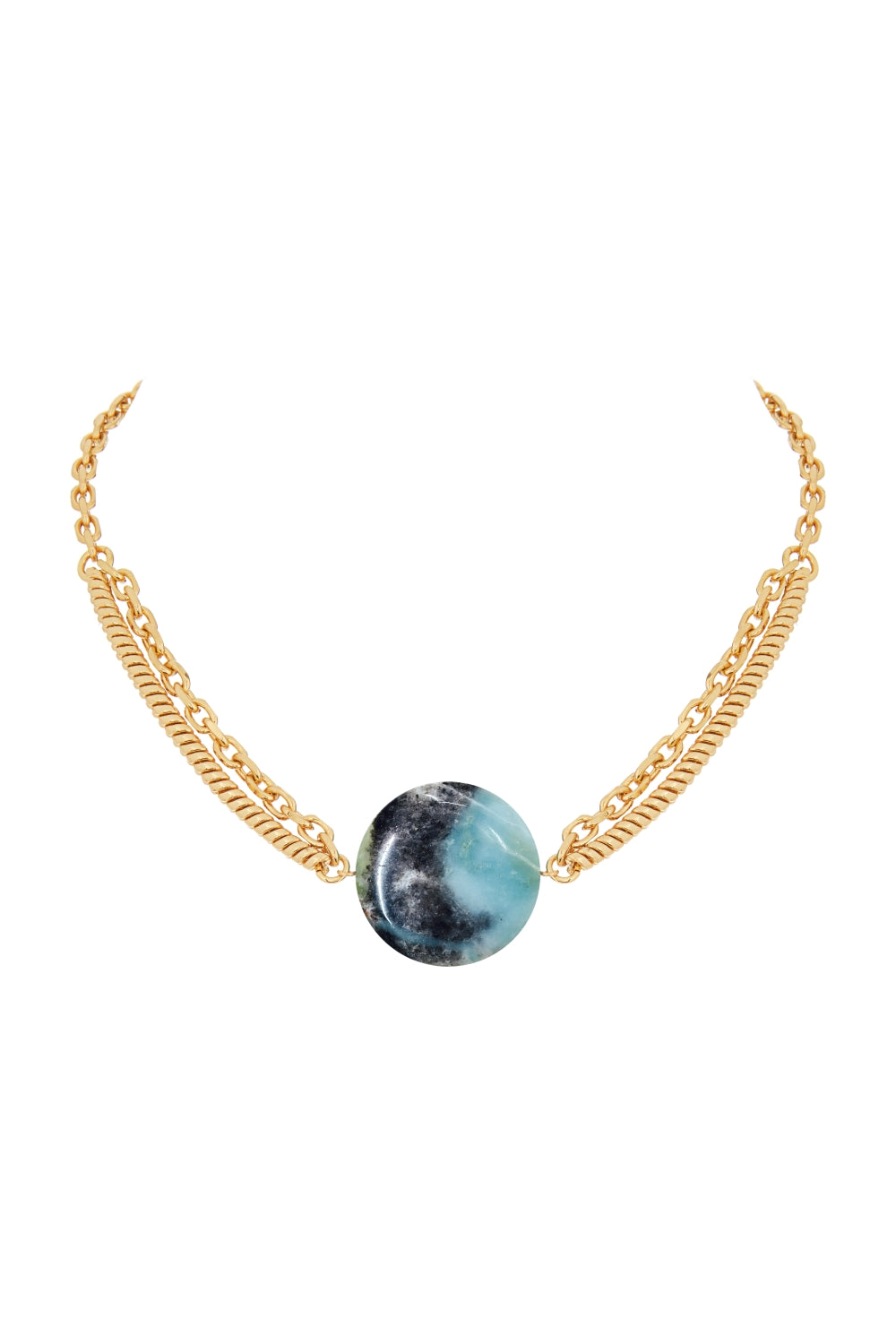 Discover elegance with our 18-inch 18K gold-plated brass chain necklace, adorned with a stunning 35mm smooth round stone. This short necklace is perfect for adding a touch of sophistication to any outfit, whether for a casual day out or a special occasion.