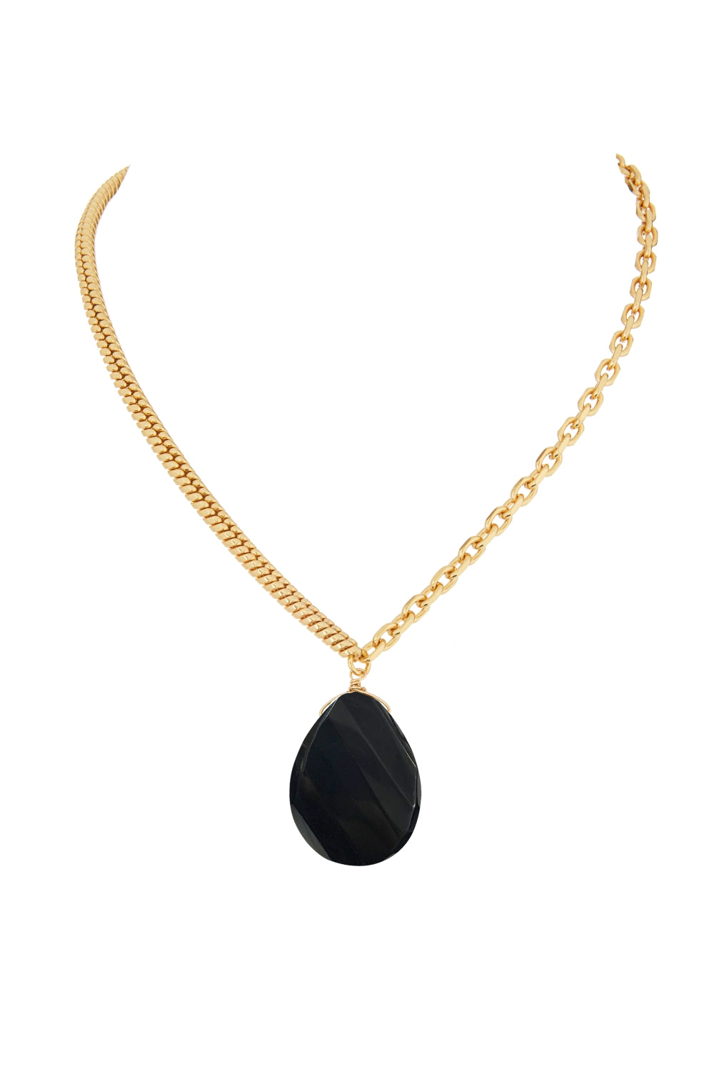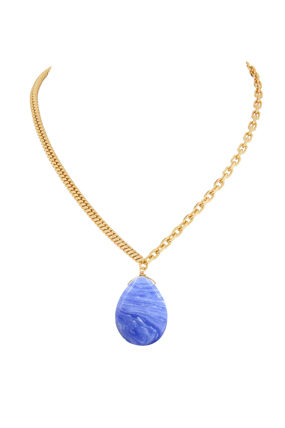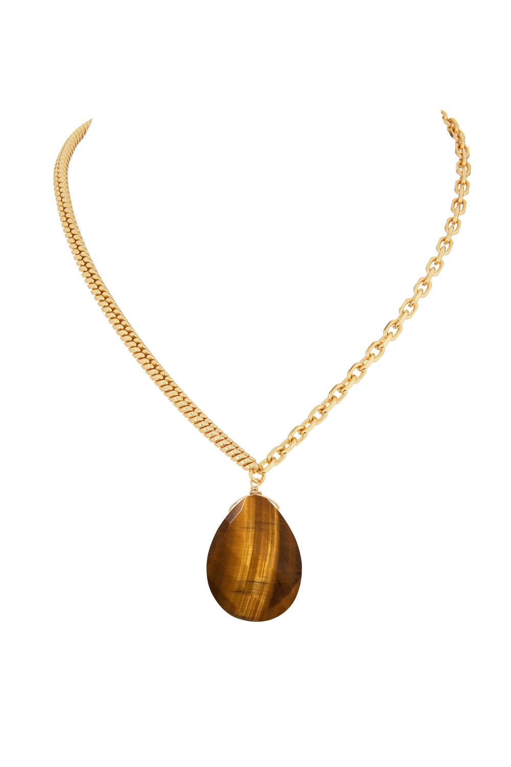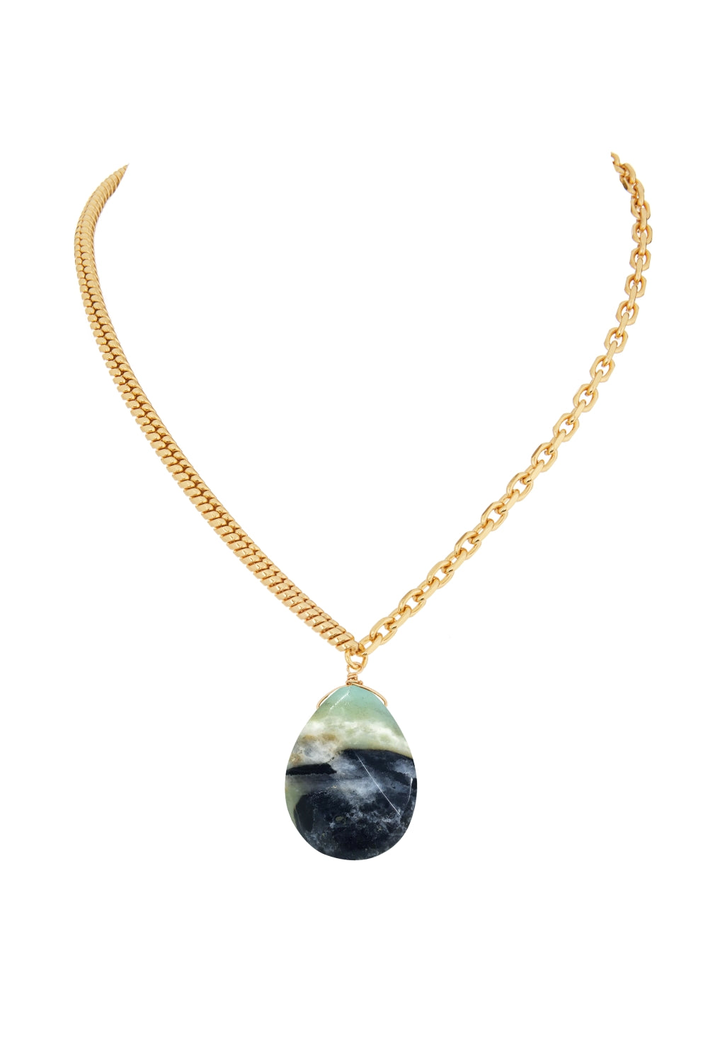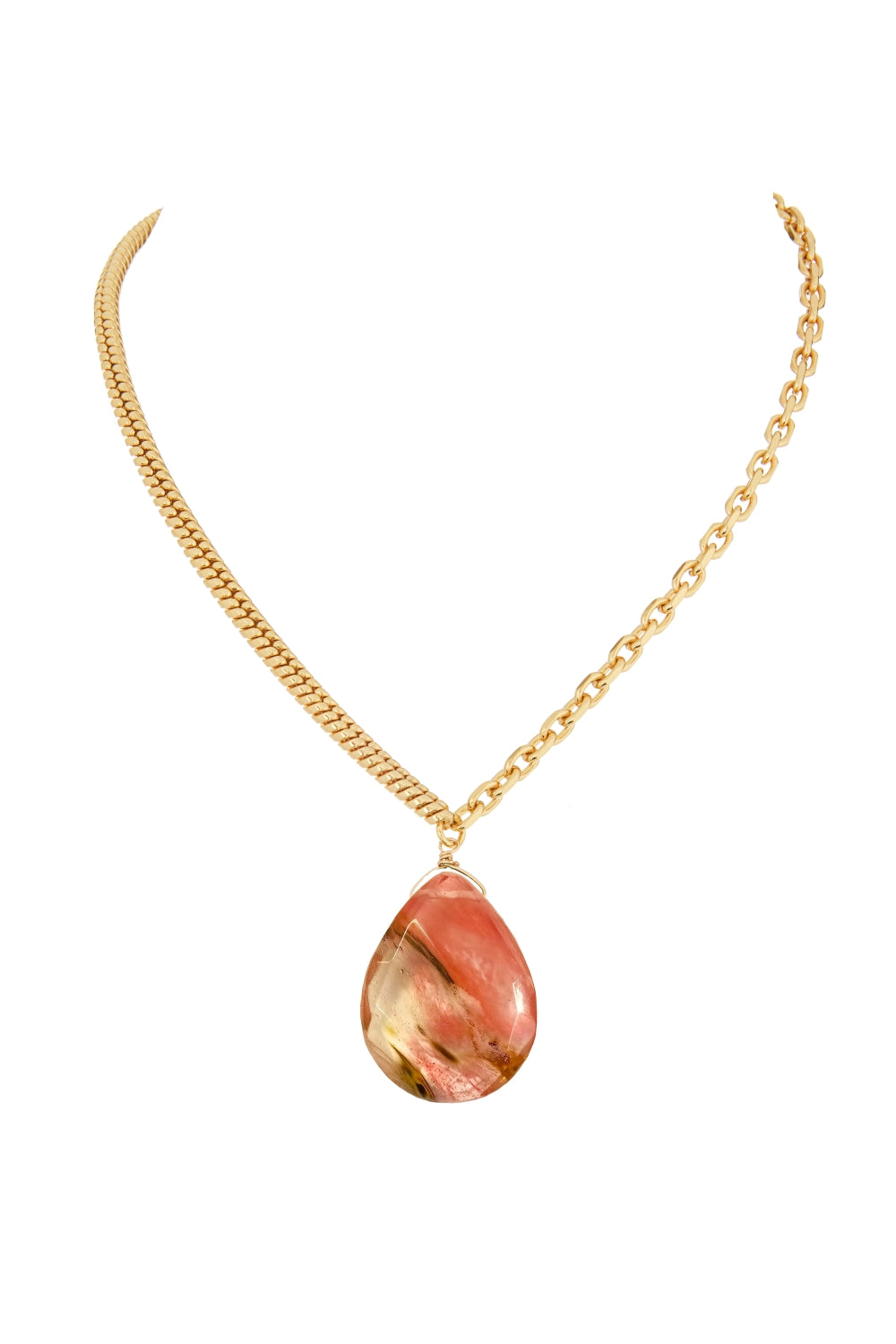 This 18-inch necklace features an 18K gold-plated brass chain with a 30x40mm teardrop-shaped stone. Its elegant design combines a luxurious gold finish with a feminine stone centerpiece, making it perfect for both formal and everyday wear.