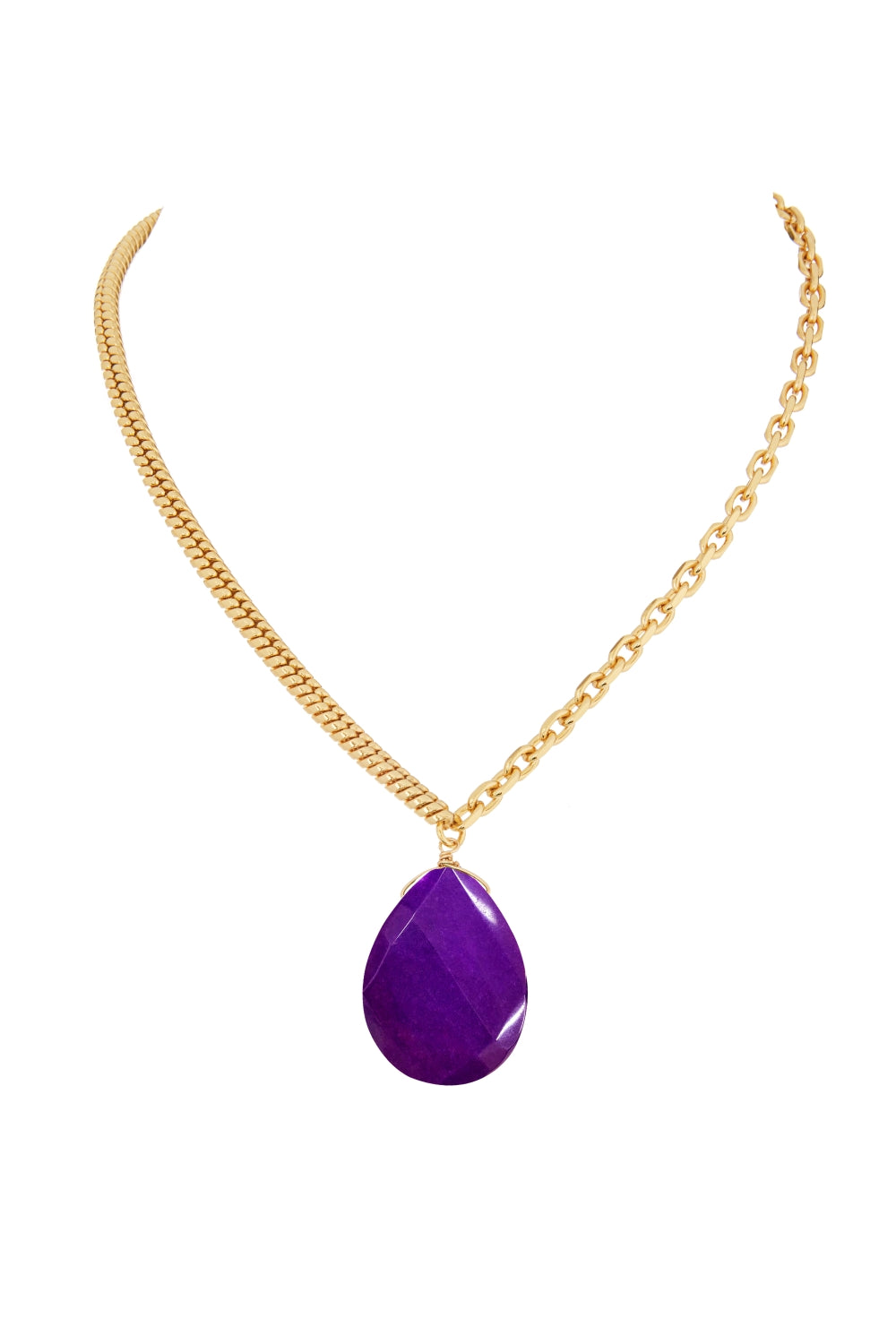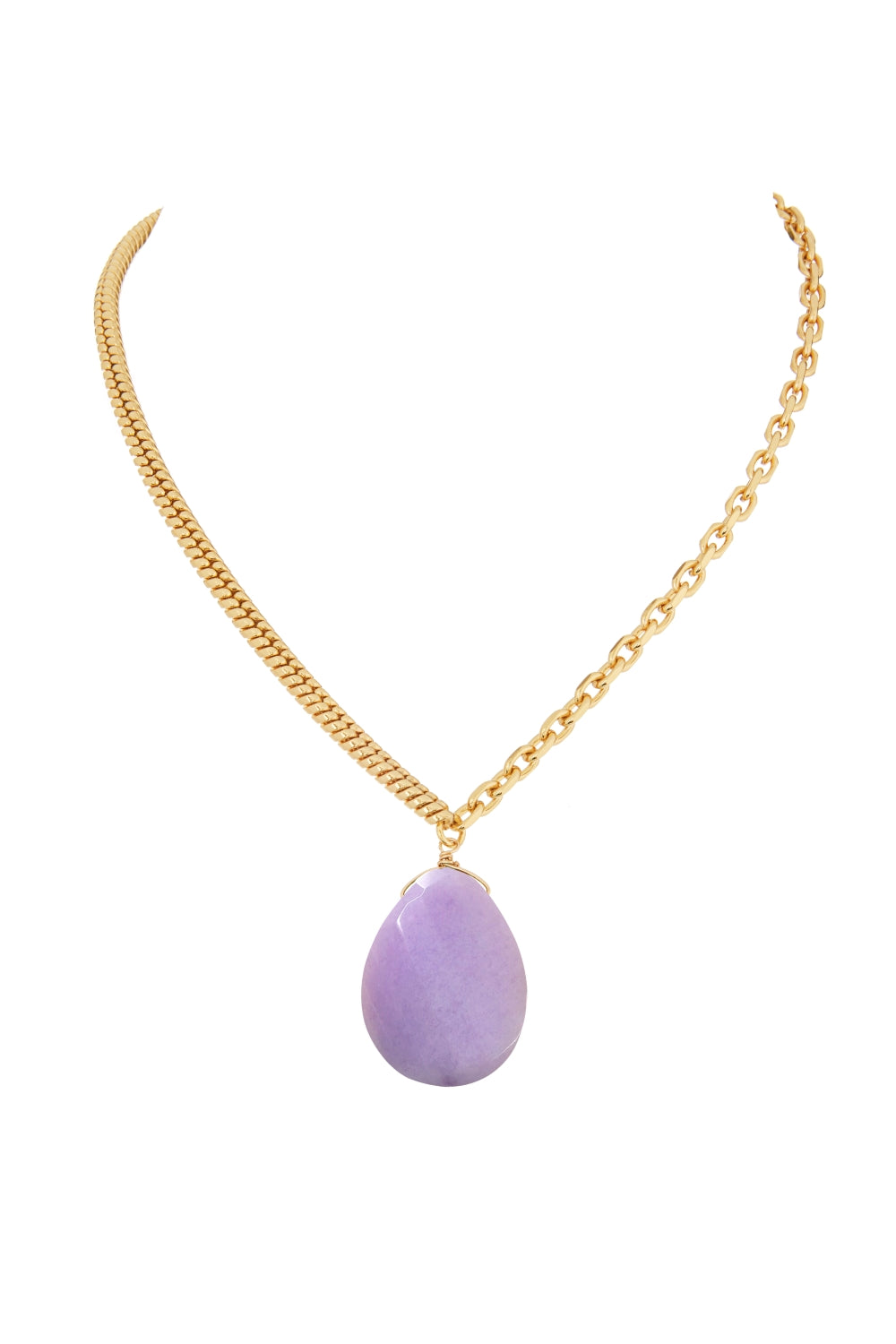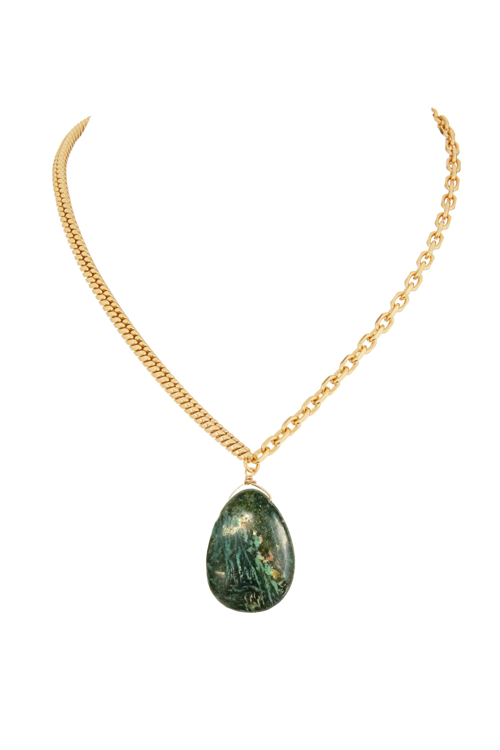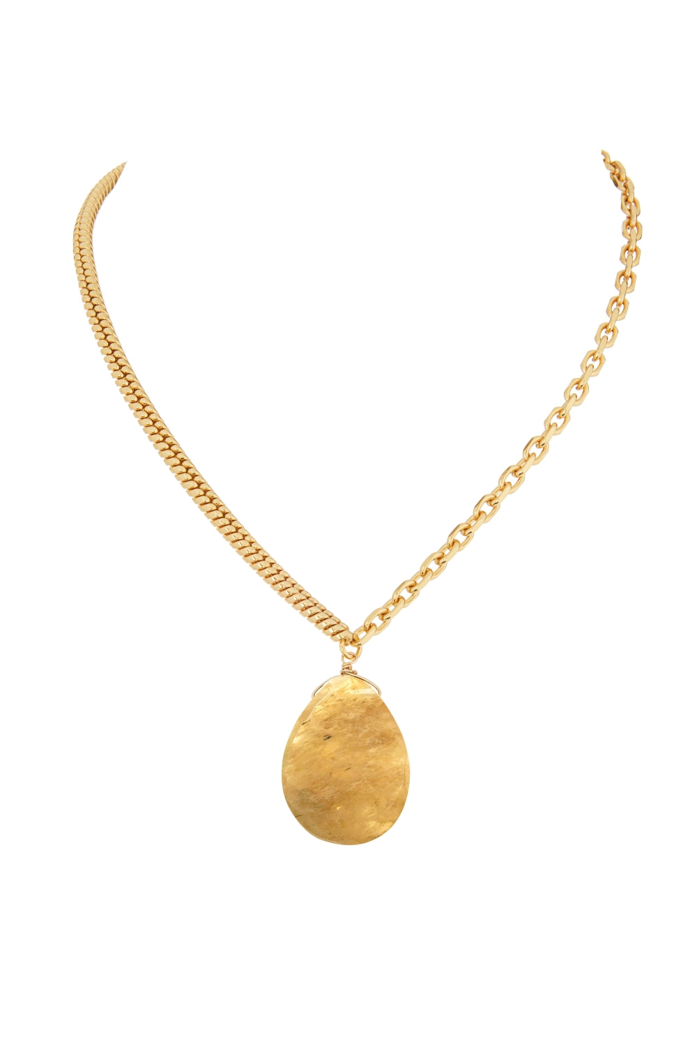This 18-inch necklace features an 18K gold-plated brass chain with a 30x40mm teardrop-shaped stone. Its elegant design combines a luxurious gold finish with a feminine stone centerpiece, making it perfect for both formal and everyday wear.