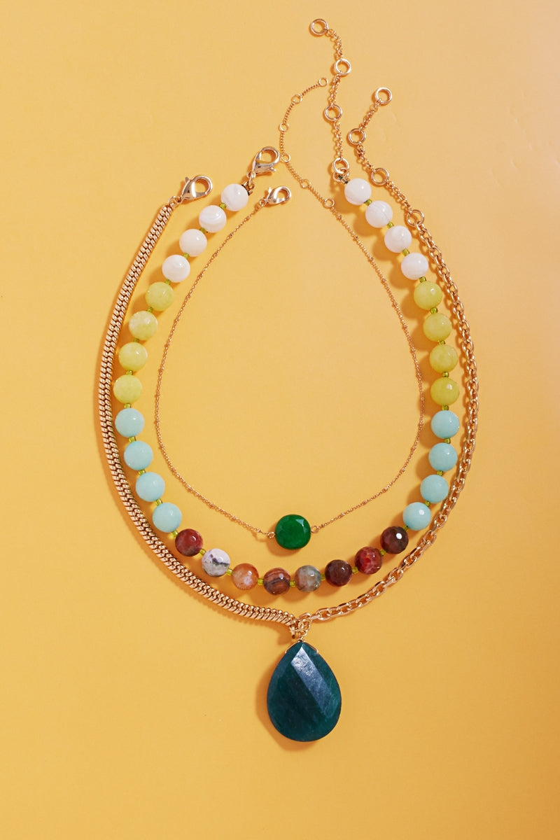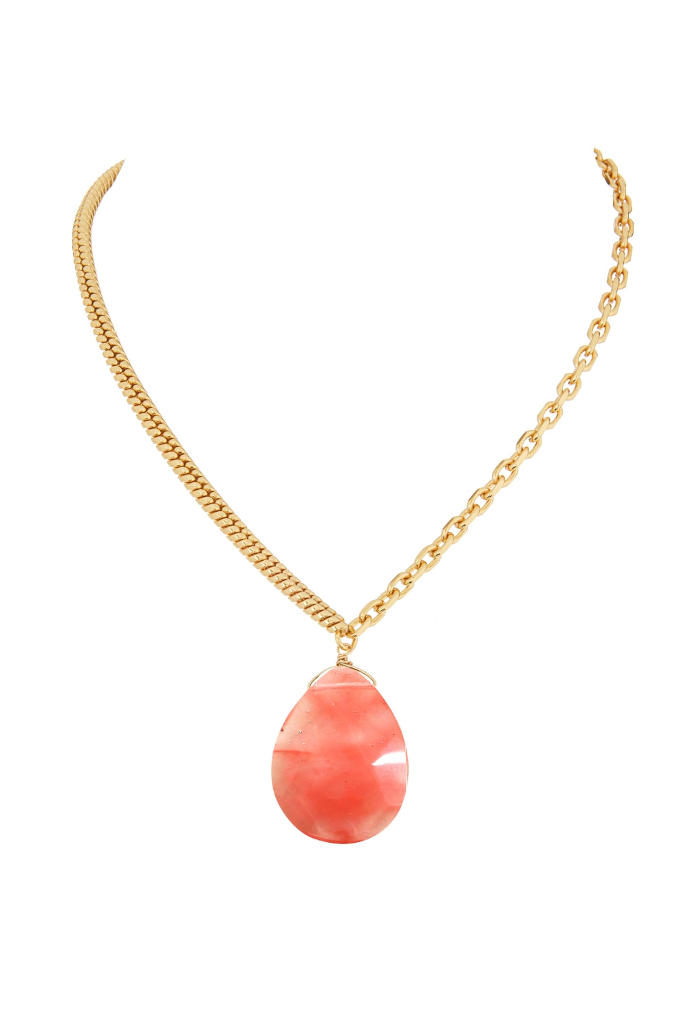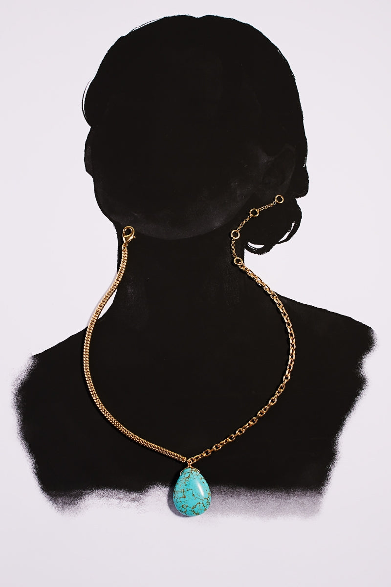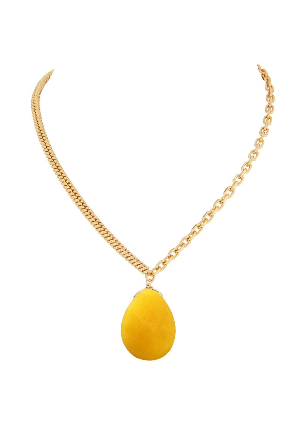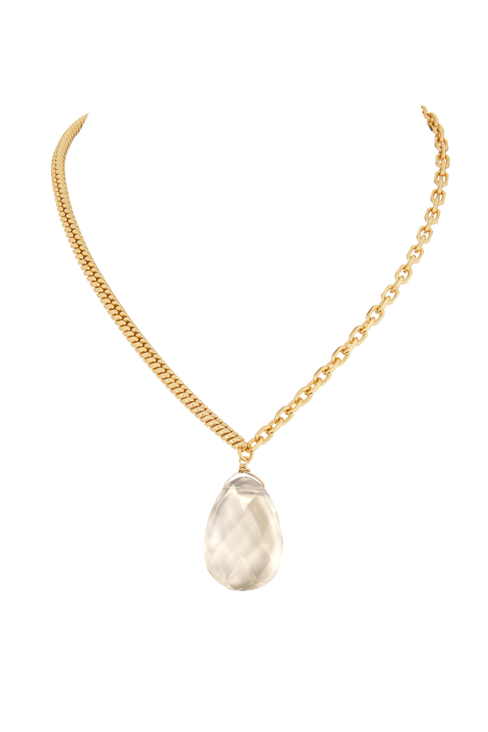This 18-inch necklace features an 18K gold-plated brass chain with a 30x40mm teardrop-shaped stone. Its elegant design combines a luxurious gold finish with a feminine stone centerpiece, making it perfect for both formal and everyday wear.
