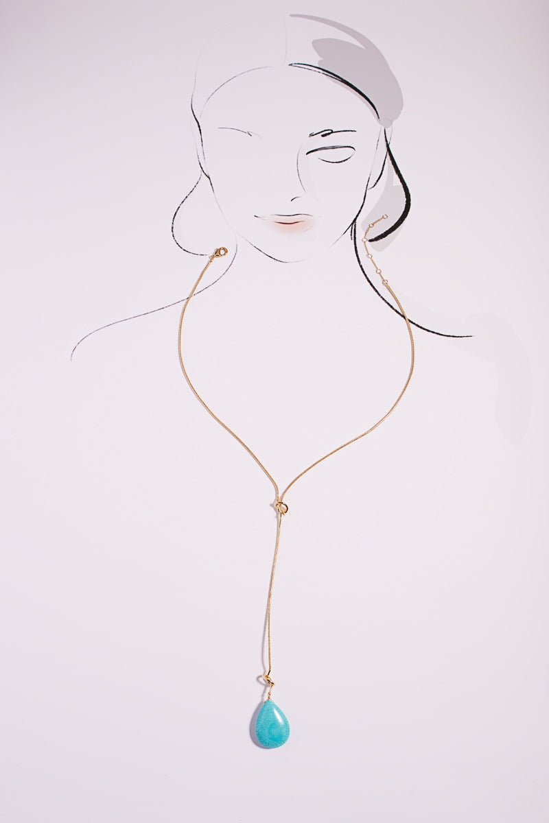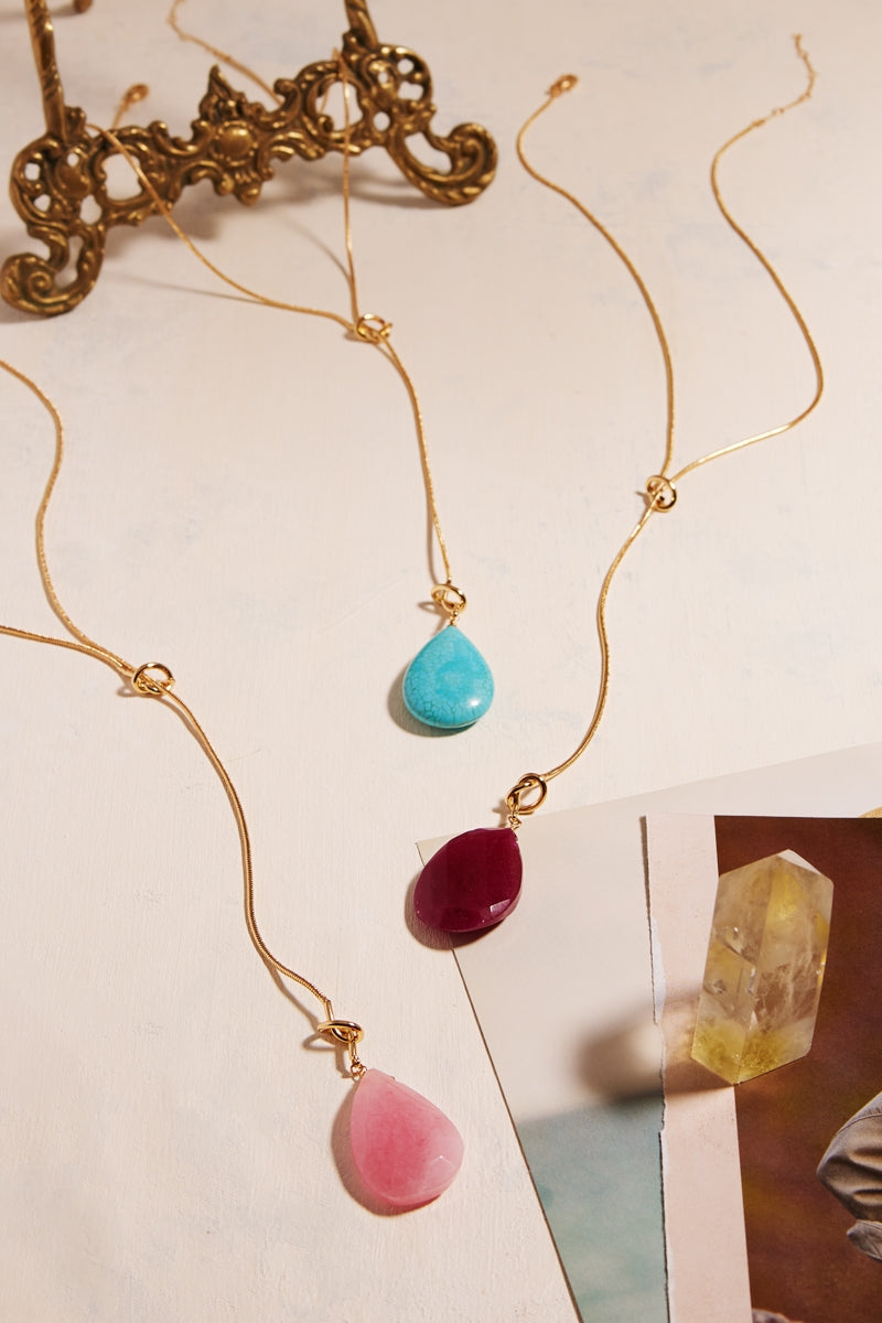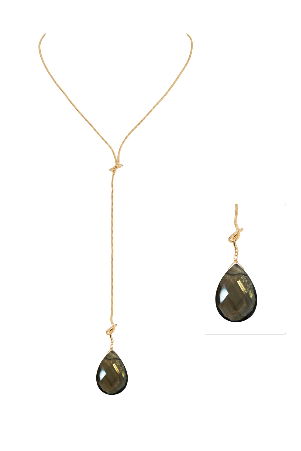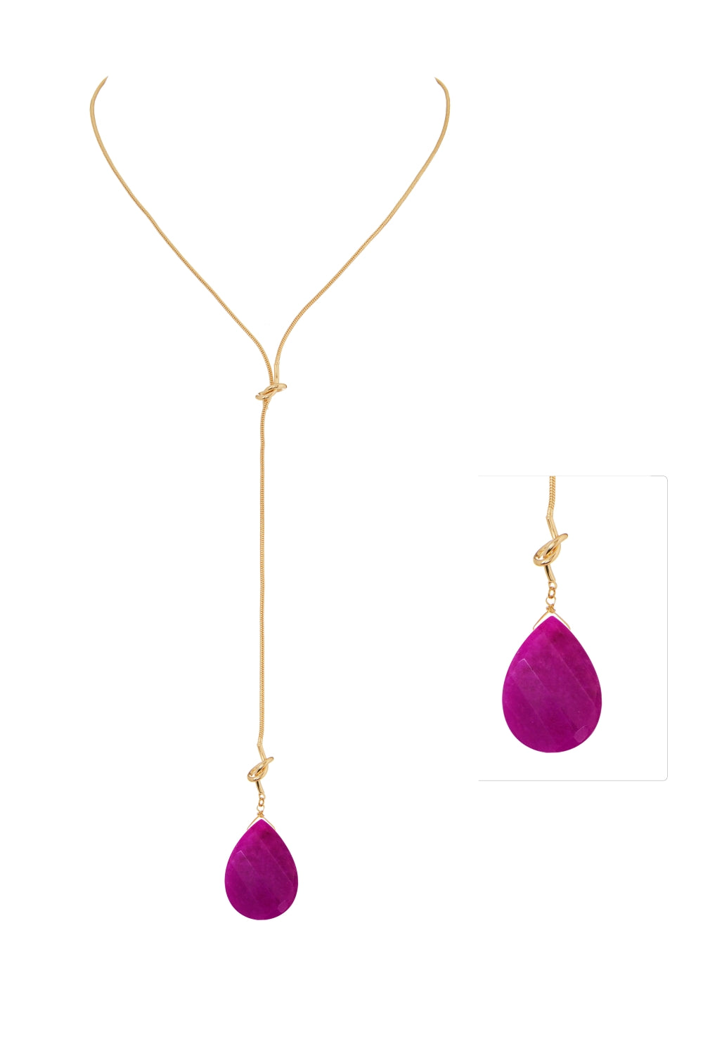 18K Gold Plated Teardrop Stone Y Shape Necklace
