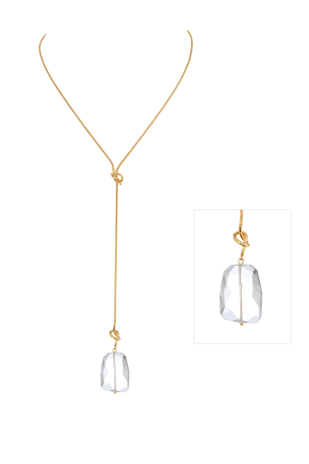 18K Gold Plated Waved Cut Stone Y Shape Necklace