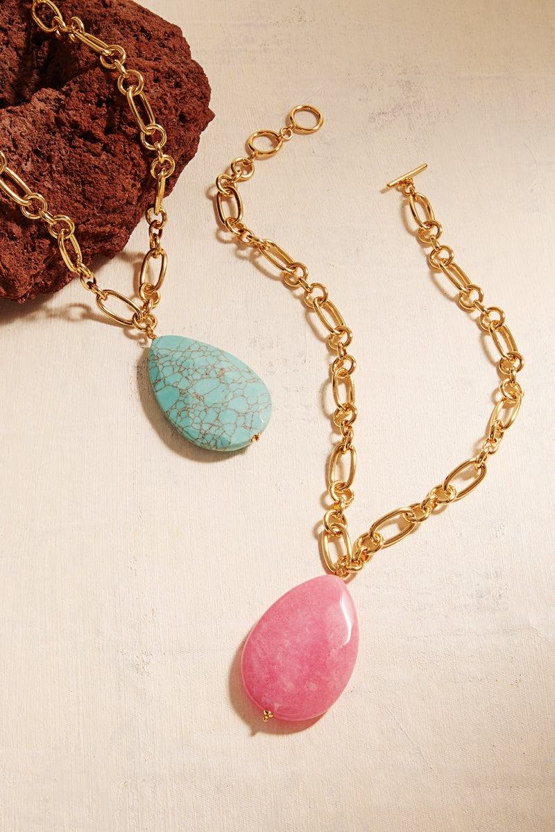 18Kt Gold Plated Chain Teardrop Stone Necklace