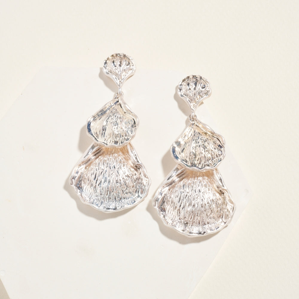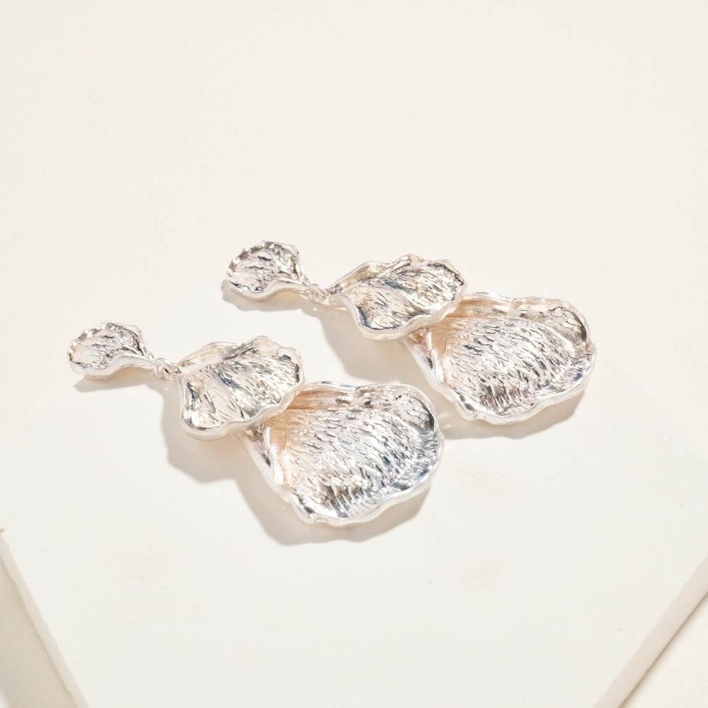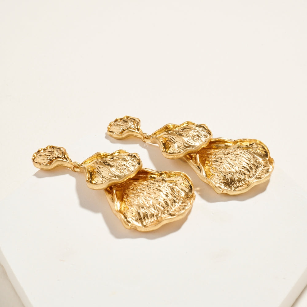 Crafted with metallic flower petal links, these drop earrings bring a modern twist to a floral design. Their 2.75 inch length adds graceful flow and lightweight comfort.