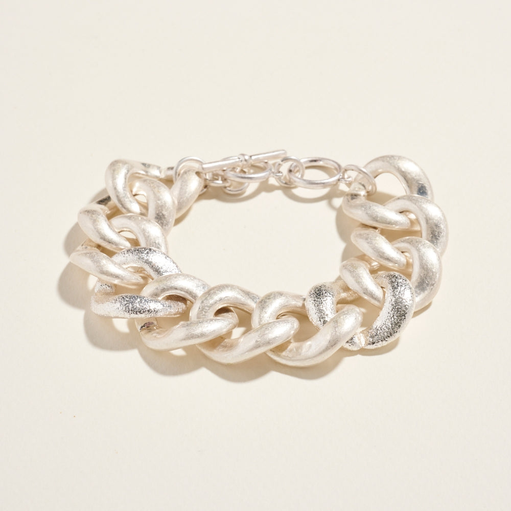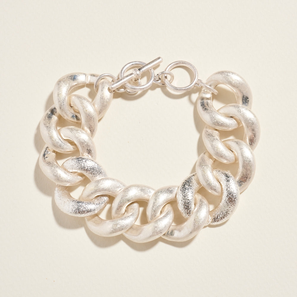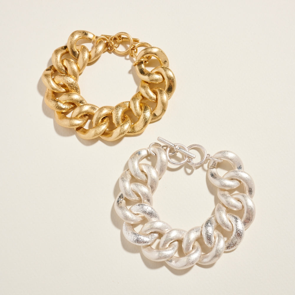 Bold and modern, this chunky chain bracelet adds instant style to any look. The T clasp closure provide a balance of durability and comfort.