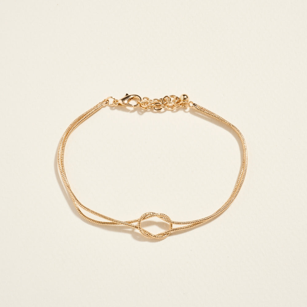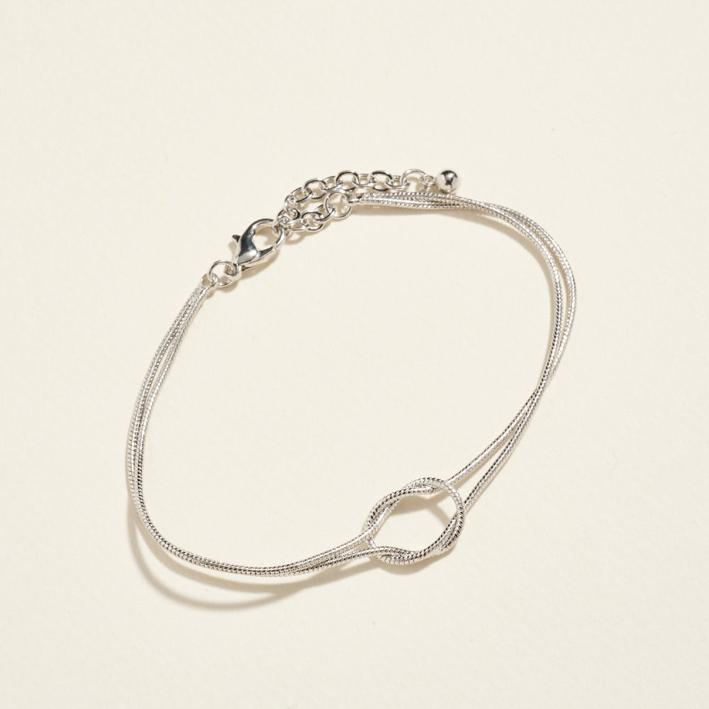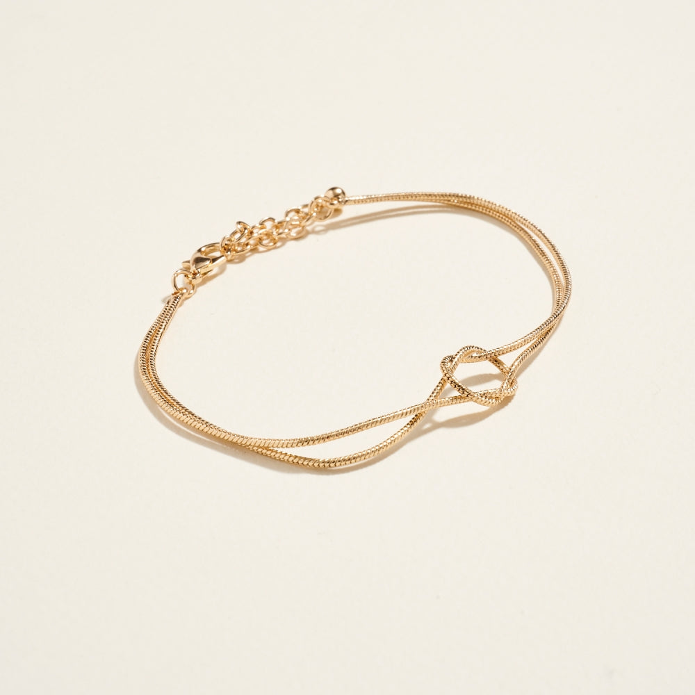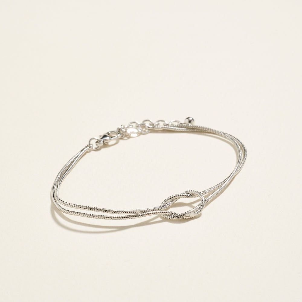 This bracelet features a sleek snake chain with a knotted detail for modern elegance. At 7.25 inches, it secures with a clasp for a polished everyday accessory.
