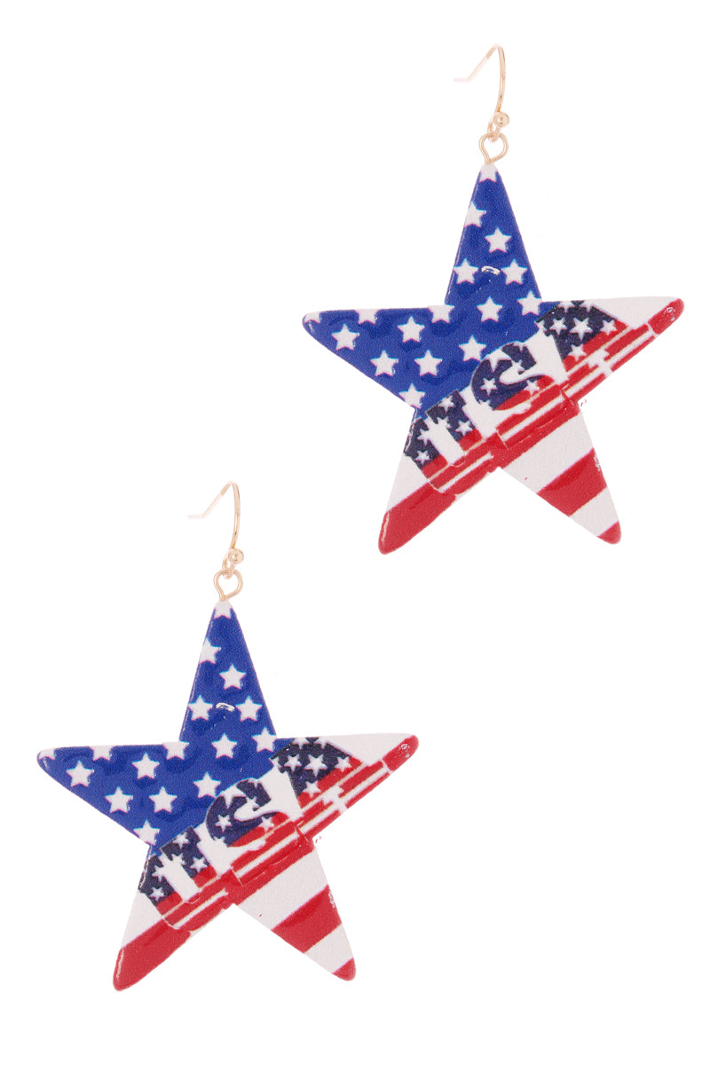 American Flag Color Shaped Enamel Hook Earrings