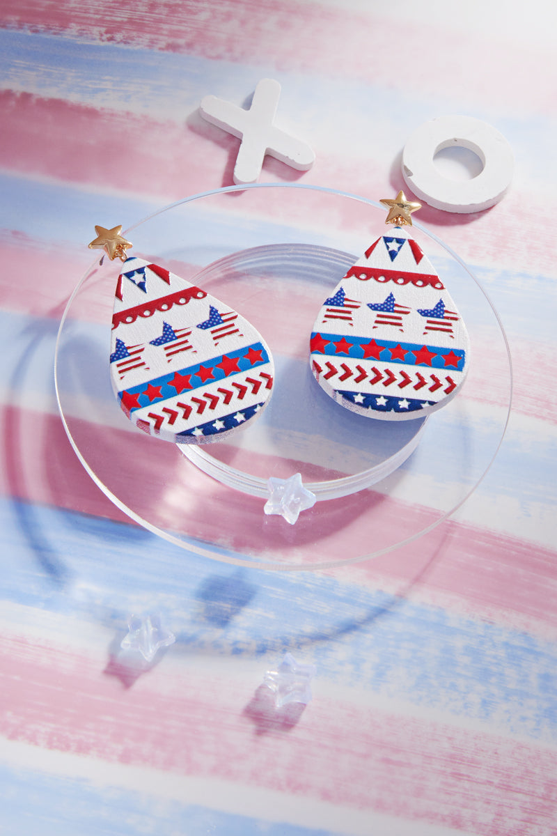 American Flag Tear Drop Shaped Wood Hook Earrings