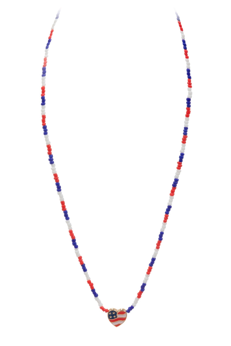 With 16 inches of length, this heart flag beaded necklace is both stylish and patriotic. The perfect accessory for any outfit, it features intricate beadwork and a heart-shaped flag pendant that symbolizes love for country. Show off your love for your country in a subtle yet stunning way.