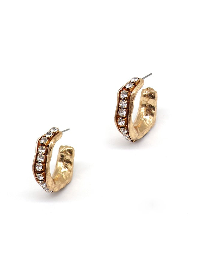 Angle Irregular Rhine Stone Titanium Hoop Earrings
