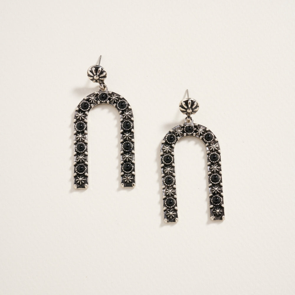 Elevate your look with these arch-shaped beaded post earrings. Featuring intricate bead detailing in a unique arch silhouette, they bring a trendy bohemian touch to any outfit.