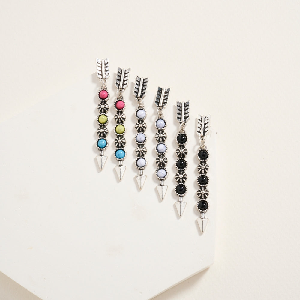 These arrow-shaped earrings are adorned with beaded designs that bring texture and color. Lightweight and stylish, they’re perfect for adding a playful boho touch to your everyday look.