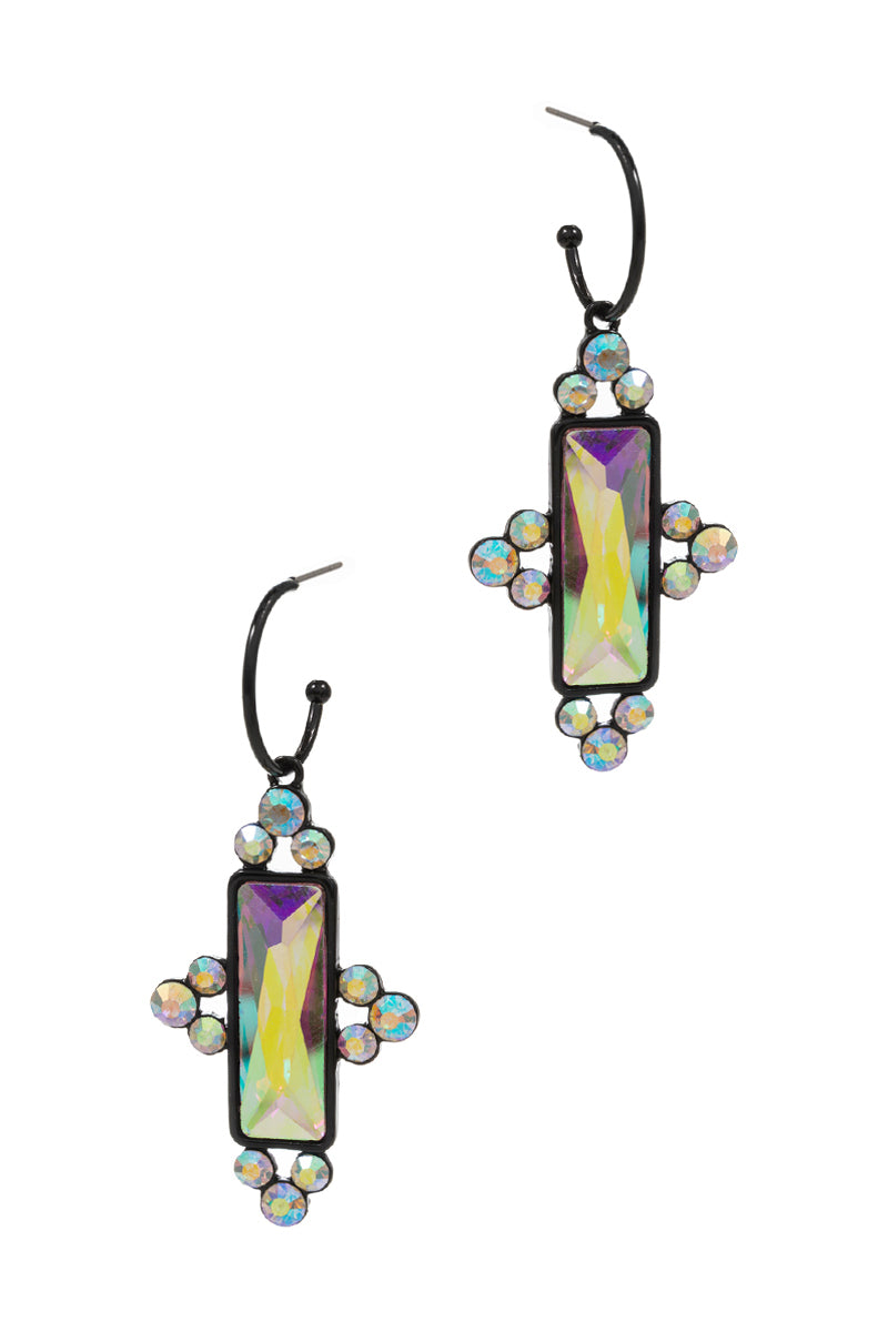 Bar Shaped Rhine Stone Paved Hoop Earrings
