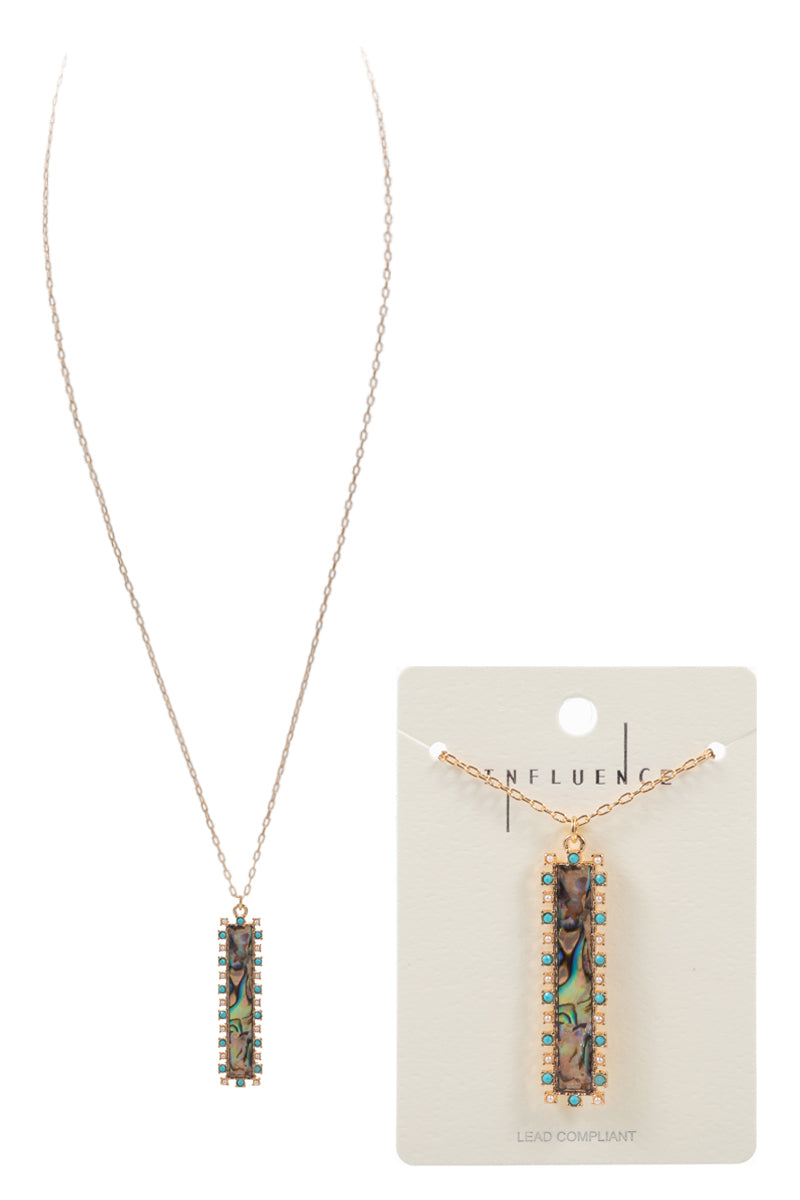 Bar Shell With Paved Frame Short Necklace