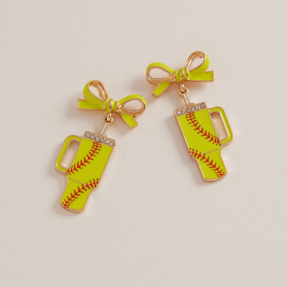 These earrings feature a baseball and softball-themed tumbler print with an adorable bow detail. Lightweight and eye-catching, they make a great addition to any boutique or gift set for game day lovers.