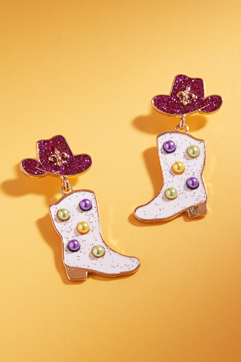 Boots Mardi Gras Color Enamel Pearls Post Earrings
