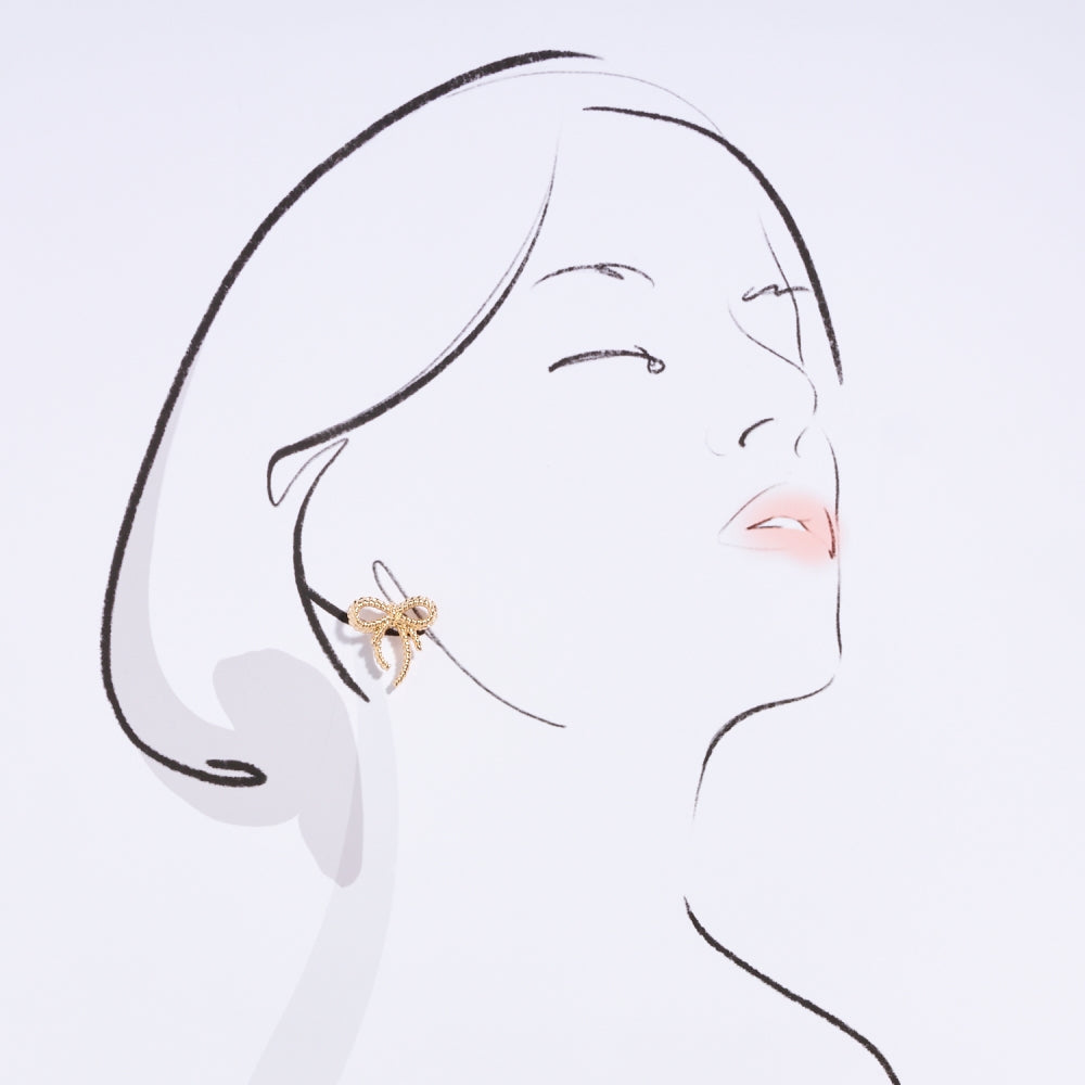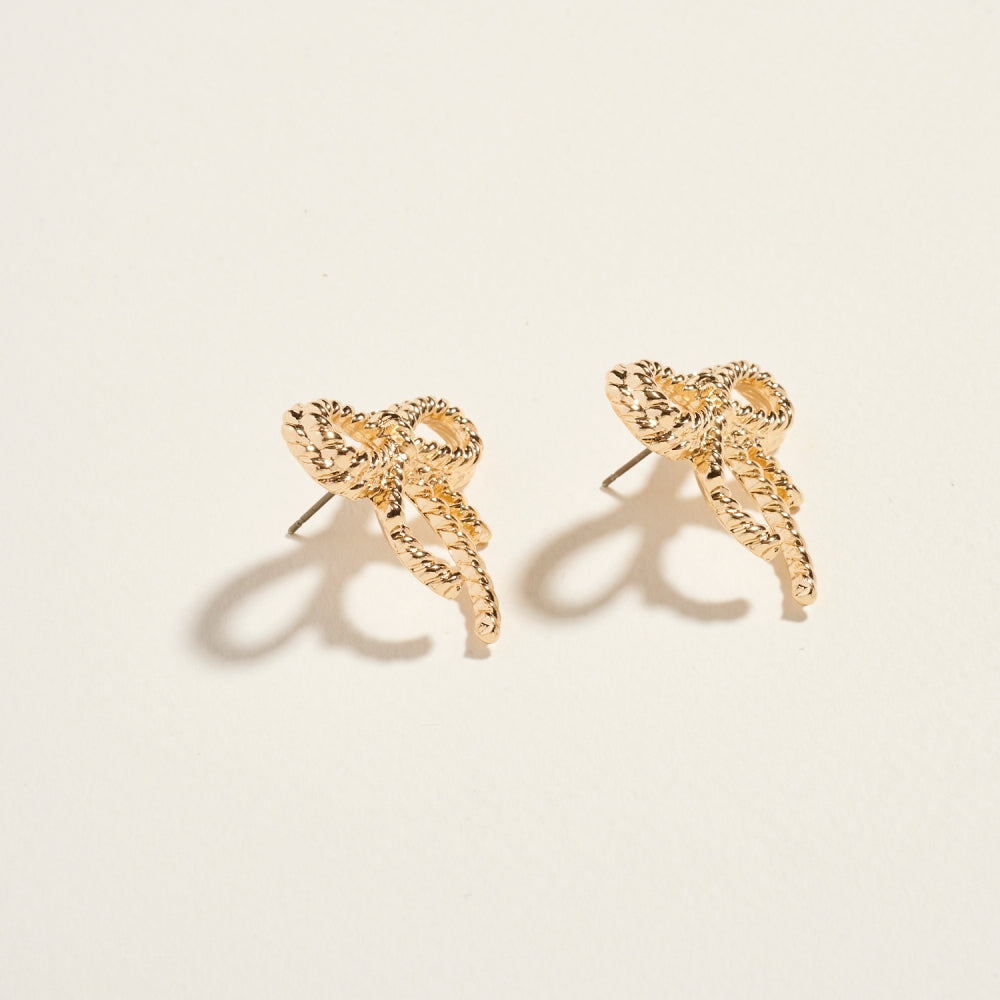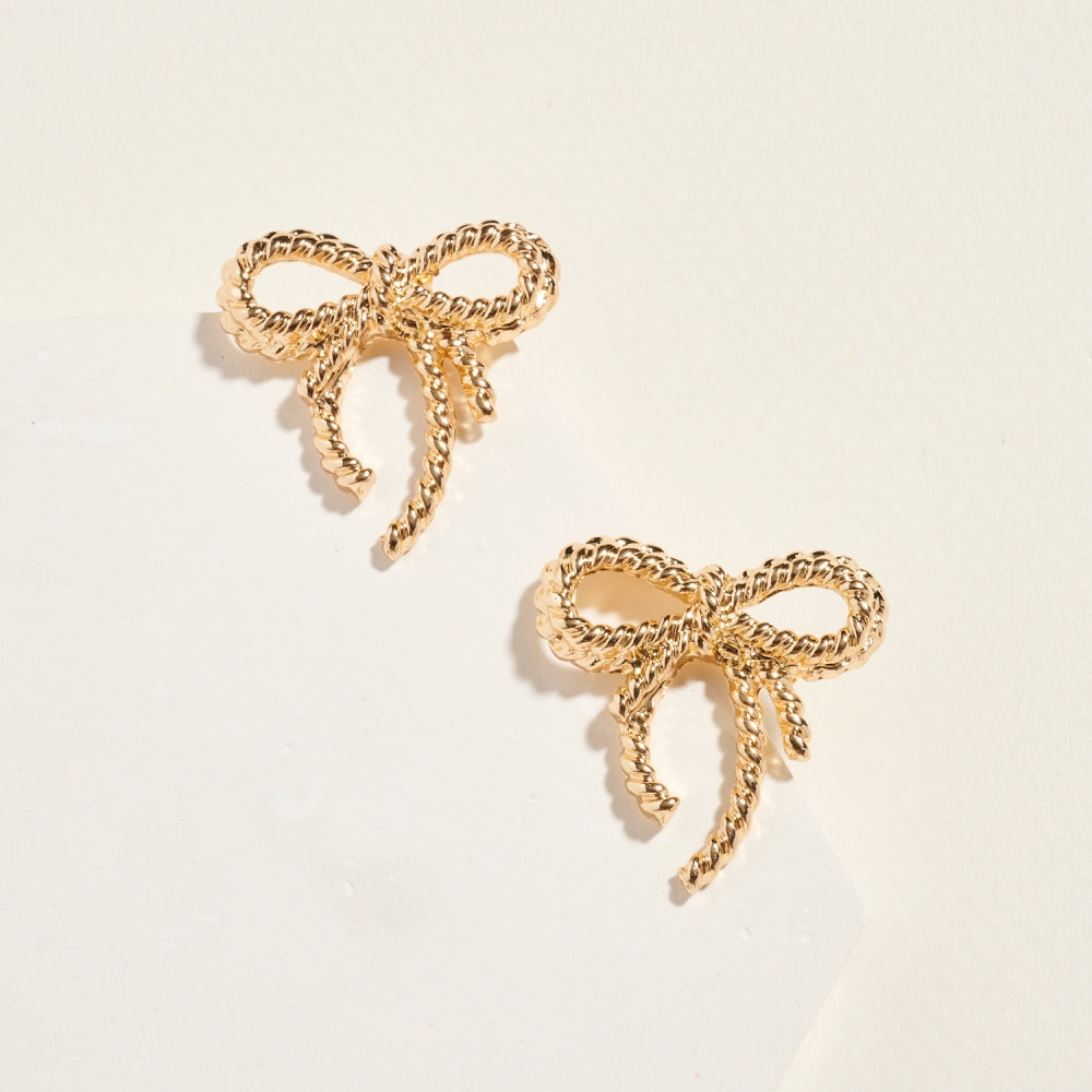 These earrings feature a delicate bow tie design crafted with ribbon-like rope detailing. Lightweight and feminine, they add a soft yet stylish touch to any outfit.