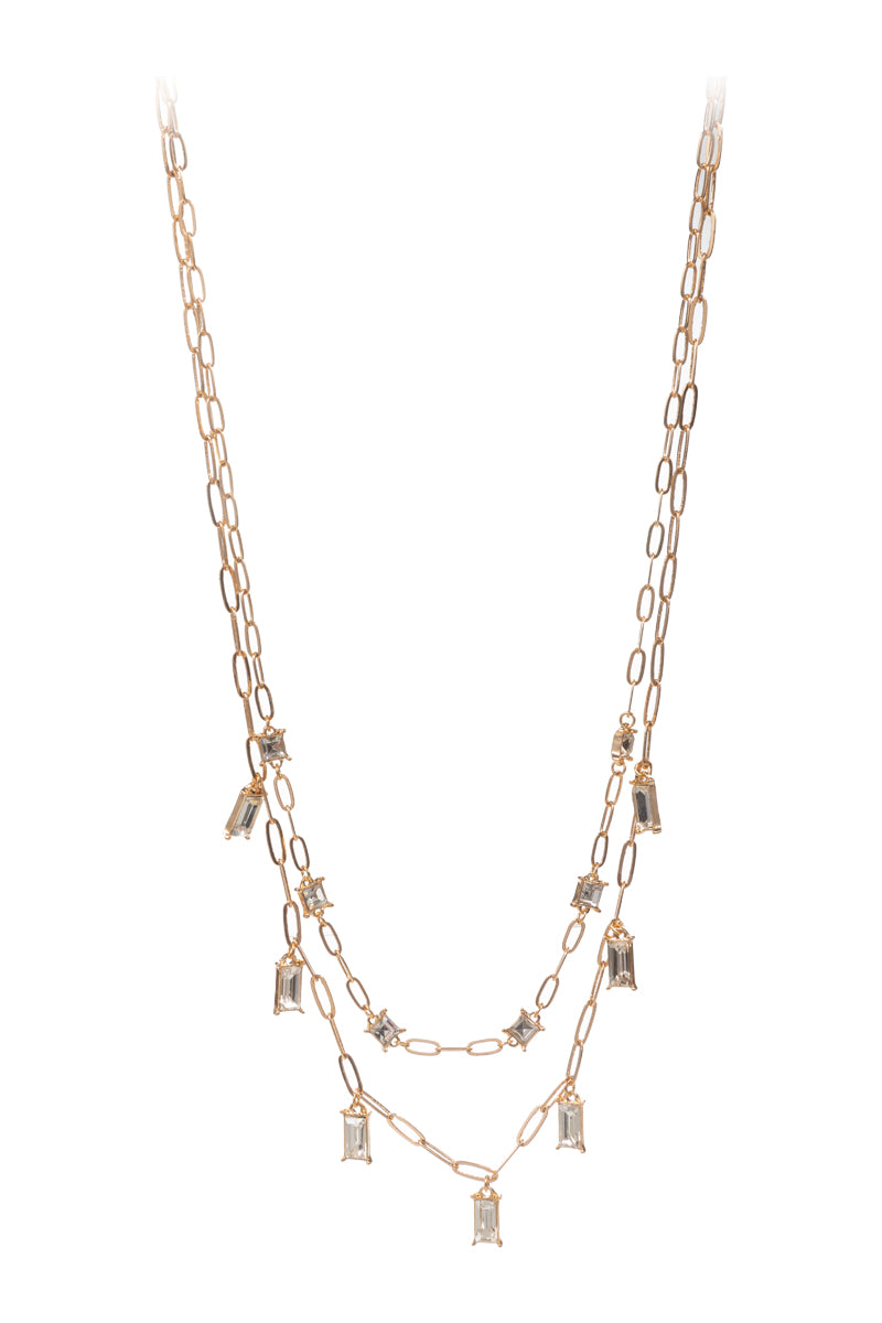 This 14-15-16 inch chain necklace is beautifully adorned with glass beads, creating a stunning and eye-catching 2 layered look.
