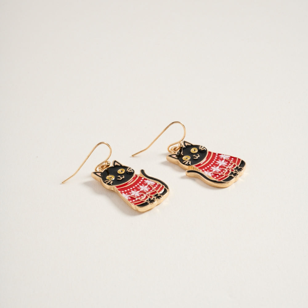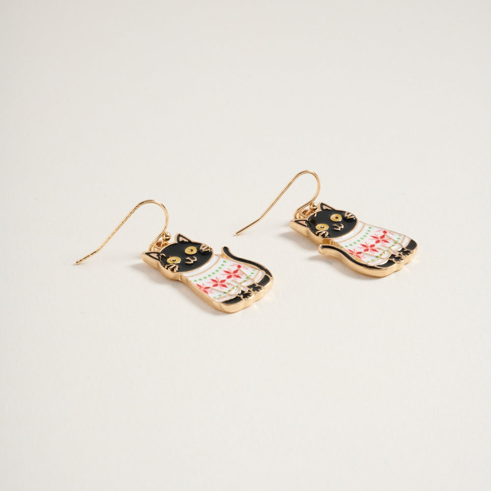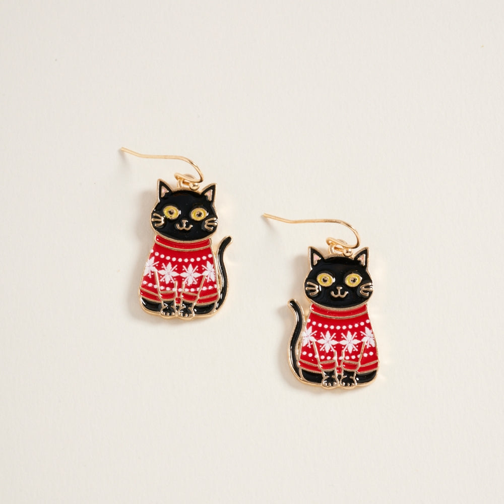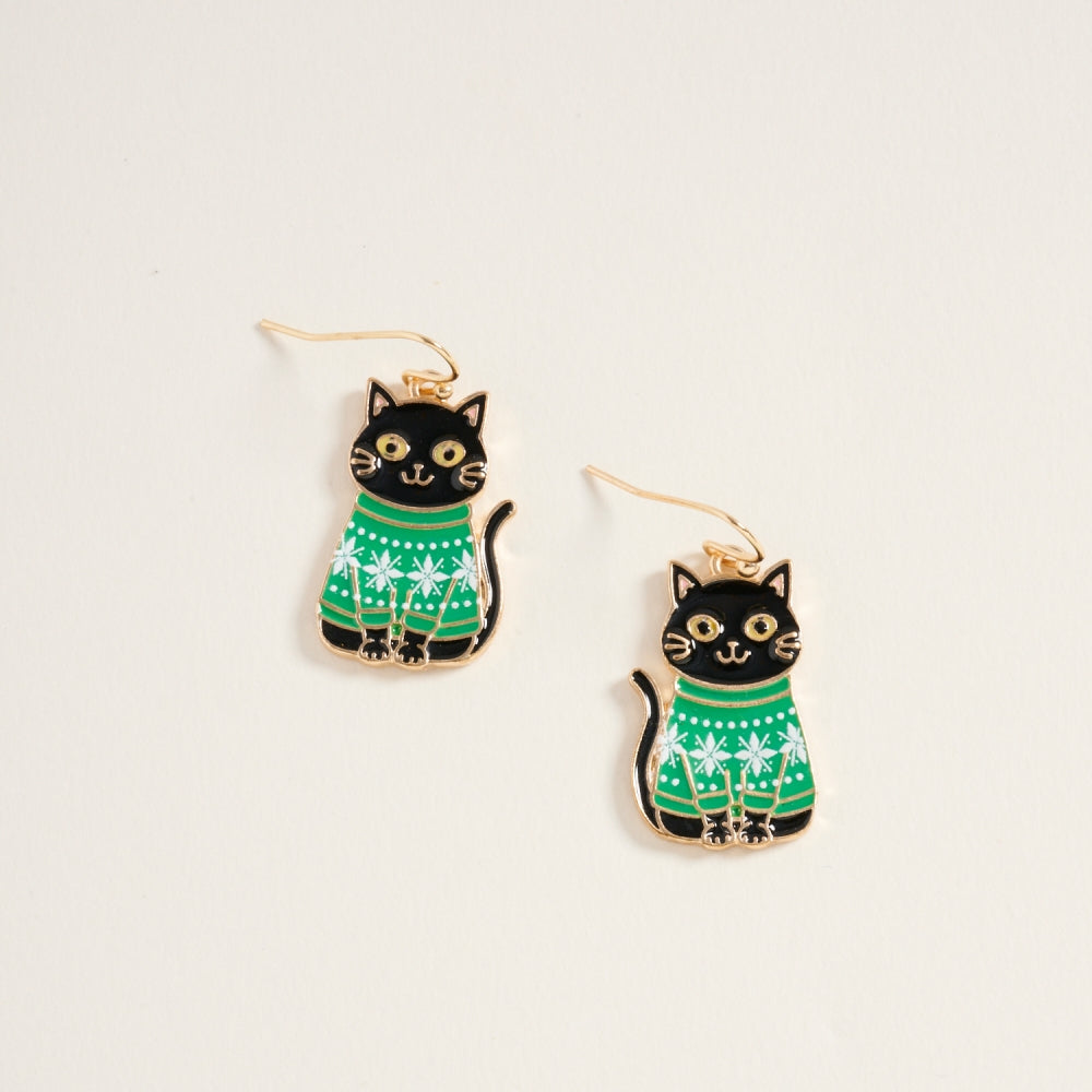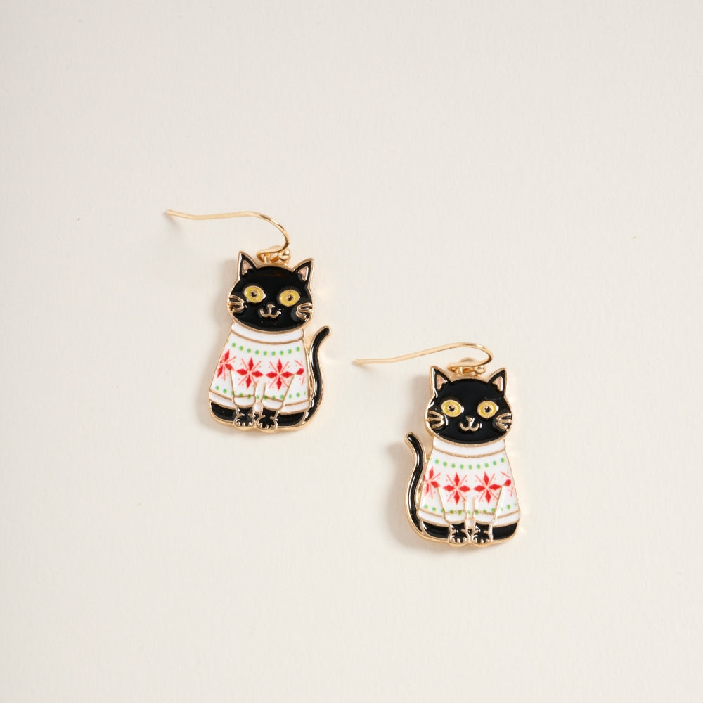 These whimsical earrings showcase an adorable cat all dressed up in a Christmas sweater. The hook style offers a comfortable fit with cheerful holiday vibes.