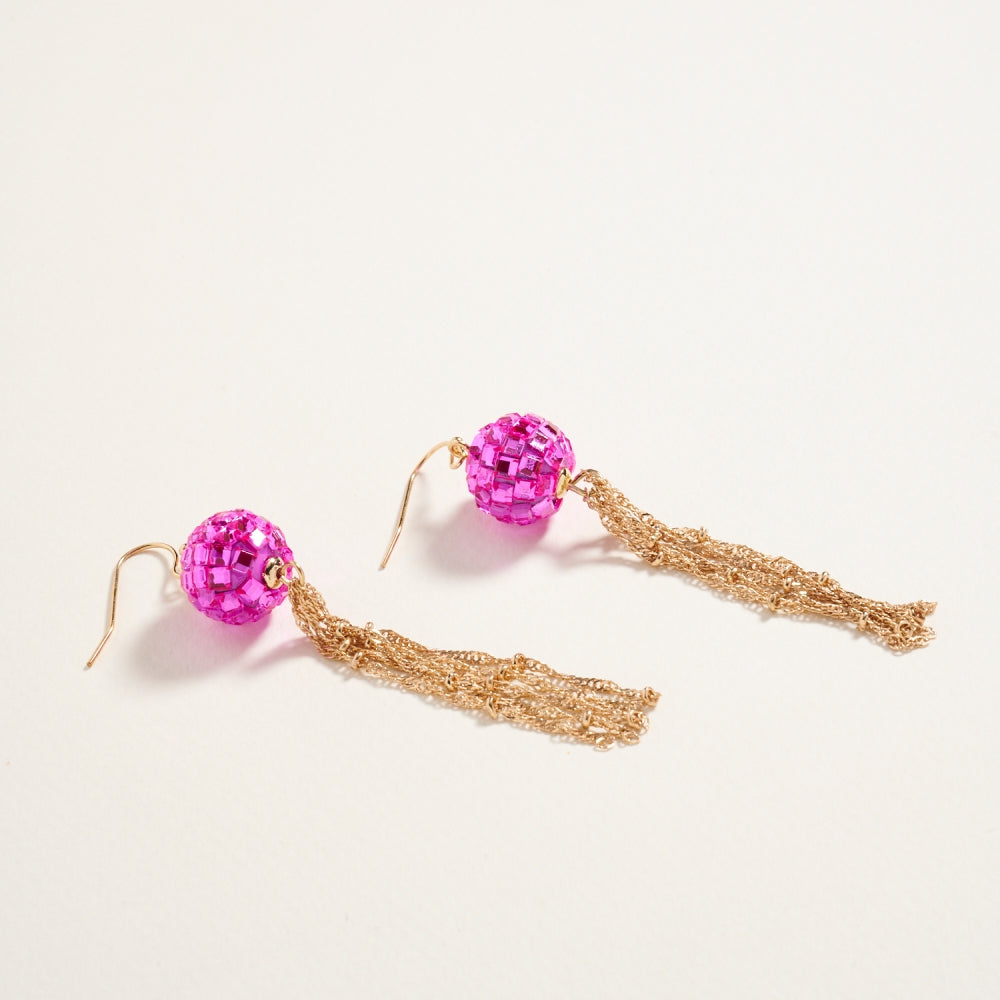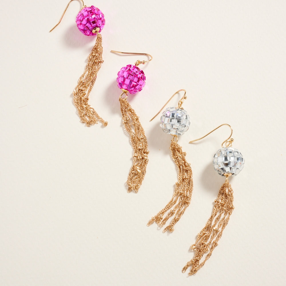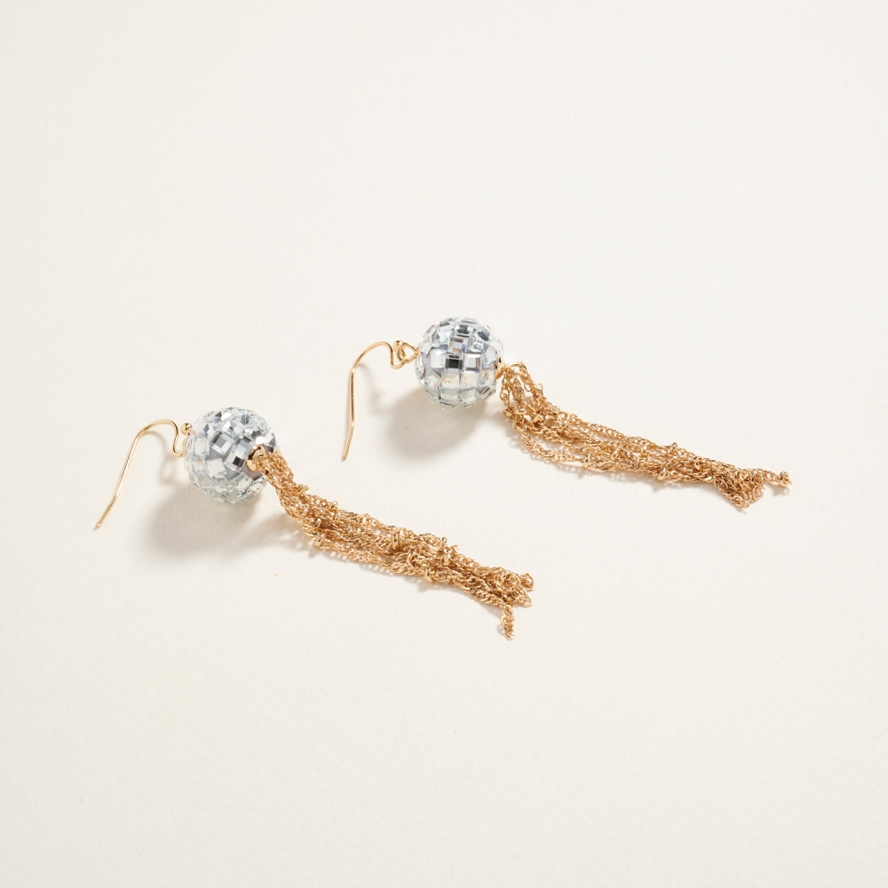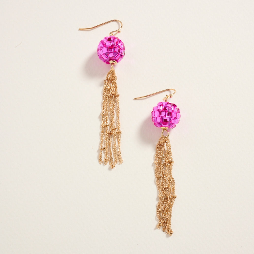The 3 inch chain with discoball hook earrings adds a touch of sophistication and sparkle to any outfit. Made with high quality materials, these earrings are durable and long-lasting.