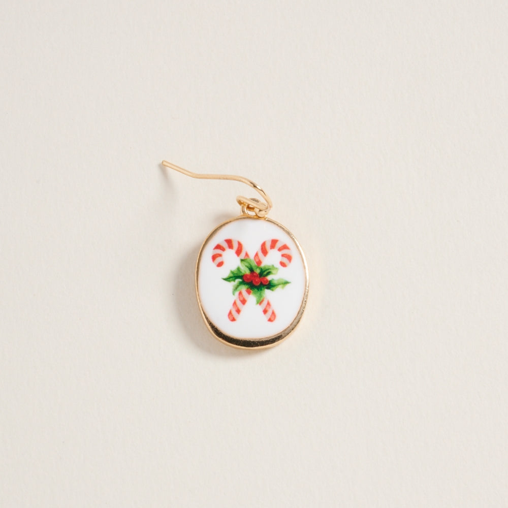 Christmas Candy Cane Enamel Stone Hook Earrings