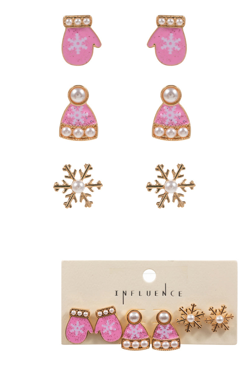 Christmas Enamel Metalic Snow 3 Set Post Earrings