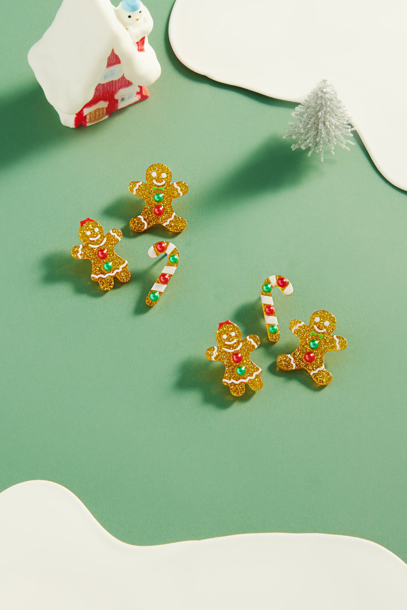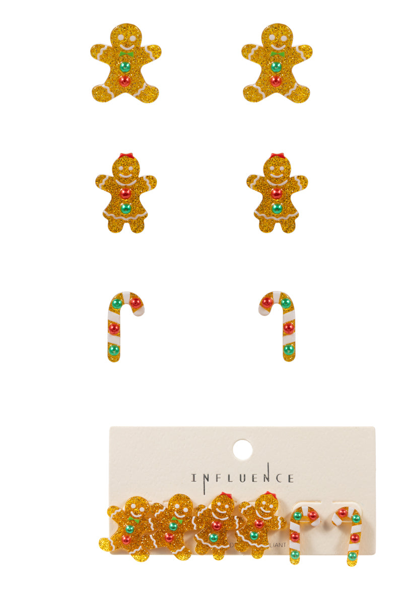 Christmas Gingerbread Acetate 3 Set Post Earrings
