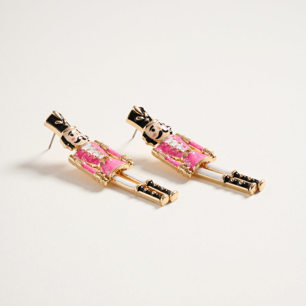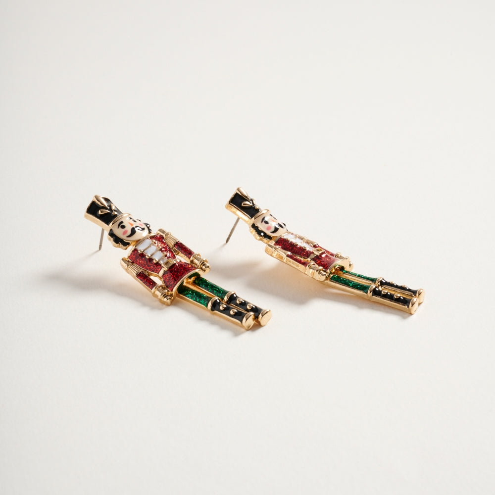 These shimmering Nutcracker earrings bring festive flair with glittery accents and bold holiday charm. A must-have for seasonal outfits.