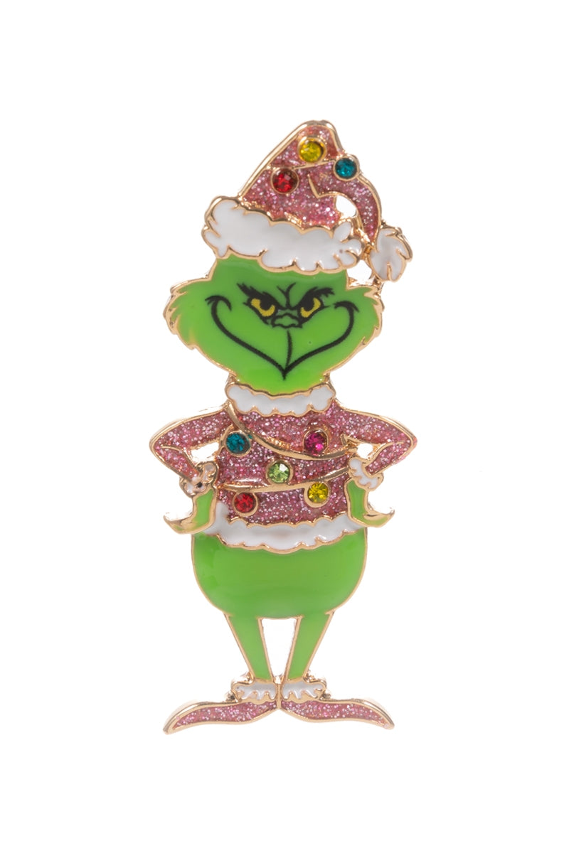 Celebrate the fun side of Christmas with this whimsical green monster brooch, shimmering with rhinestone accents.