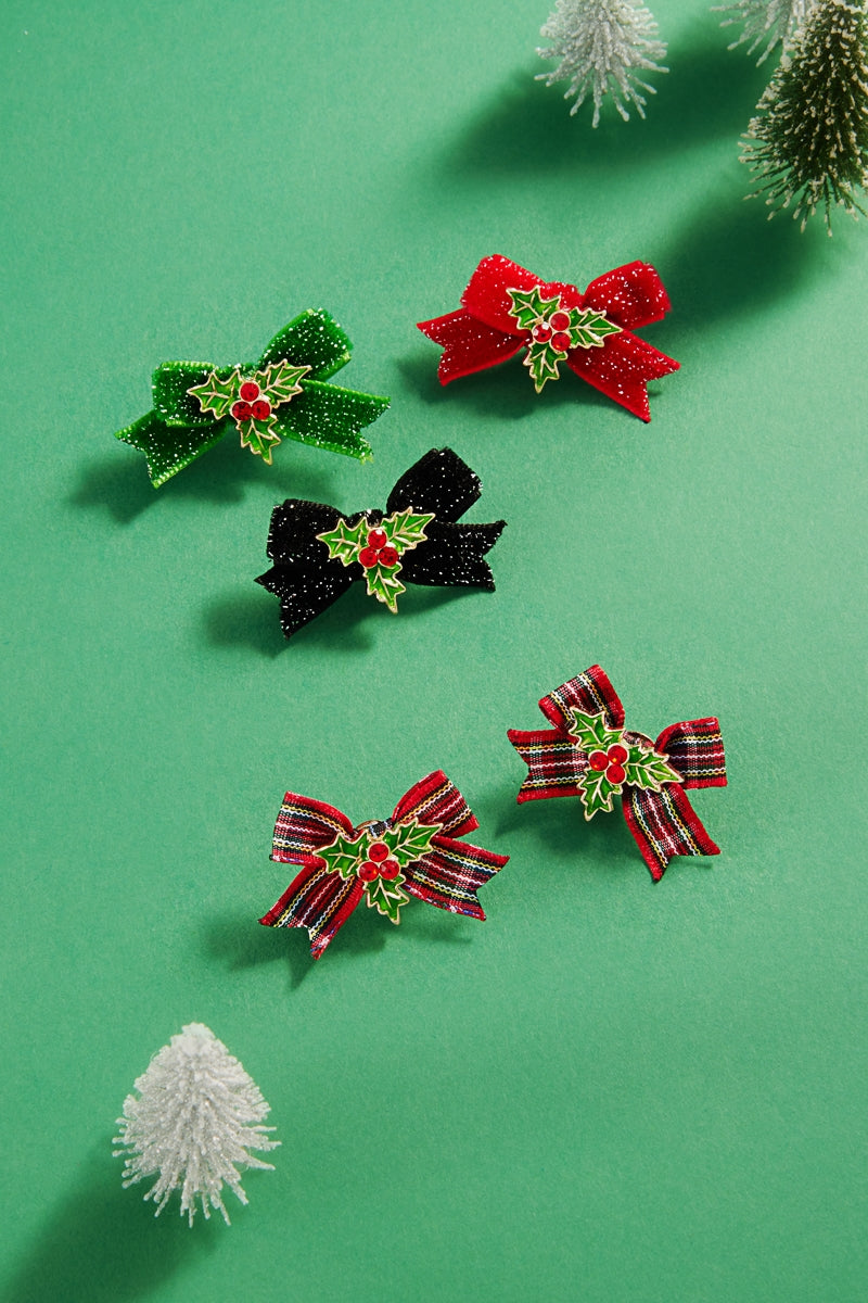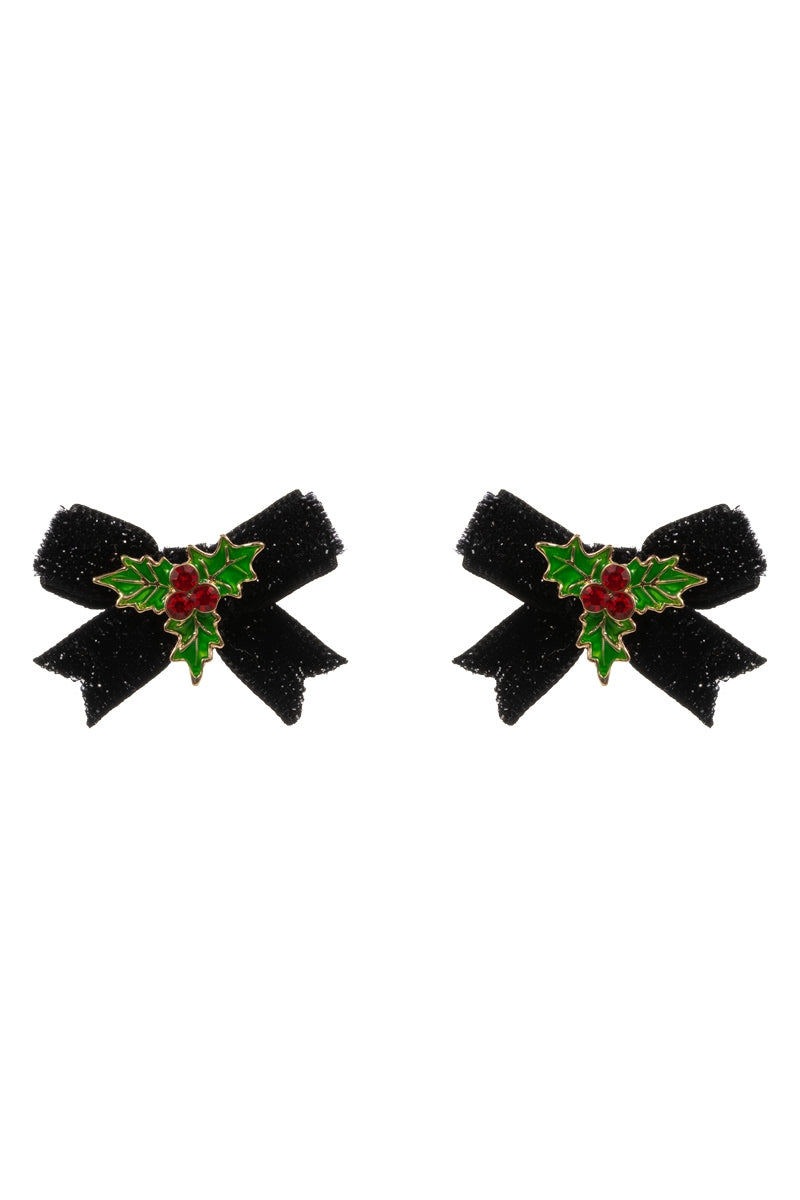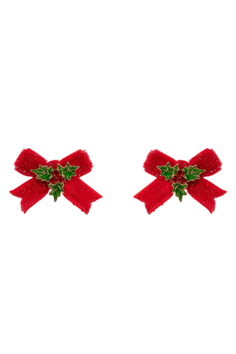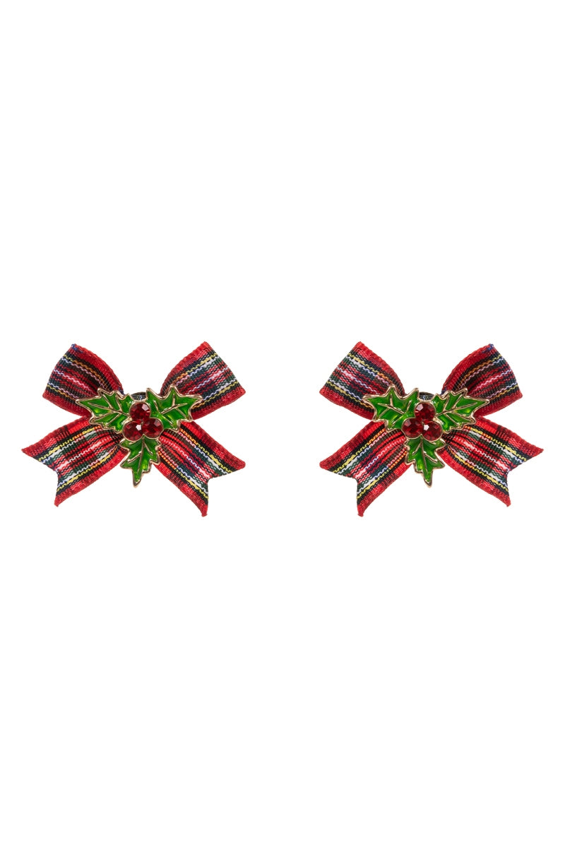 Designed with sparkling jewels and finished with a holiday ribbon, these holly post earrings are perfect for adding festive charm.