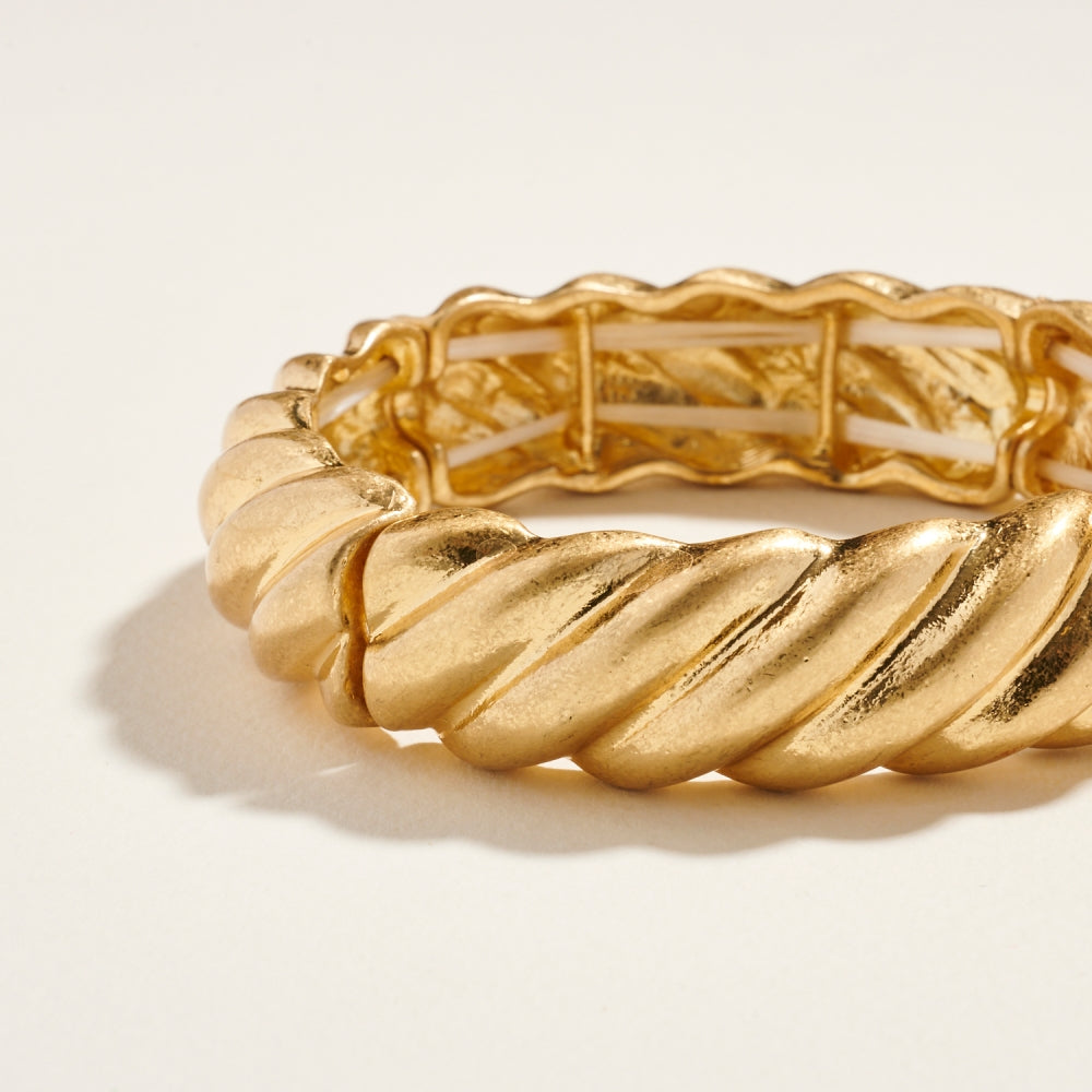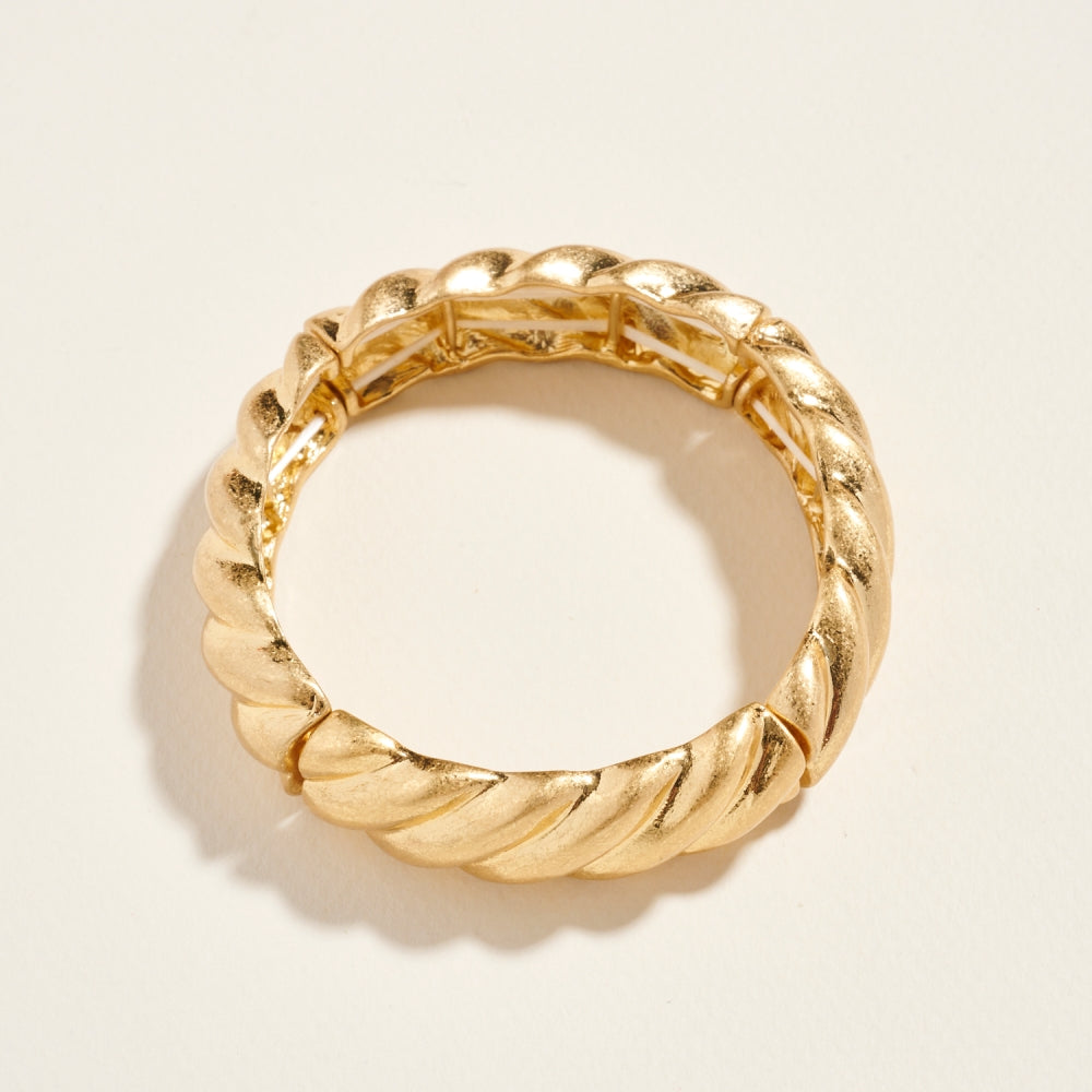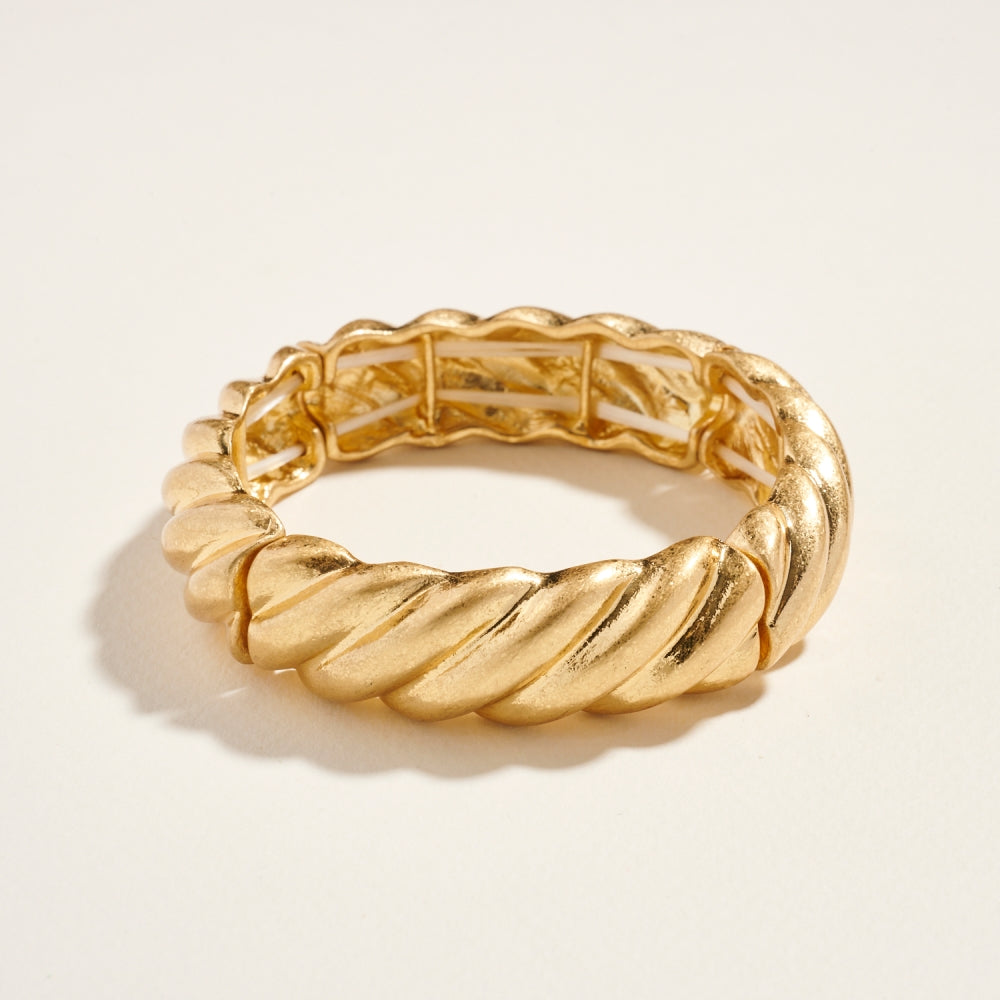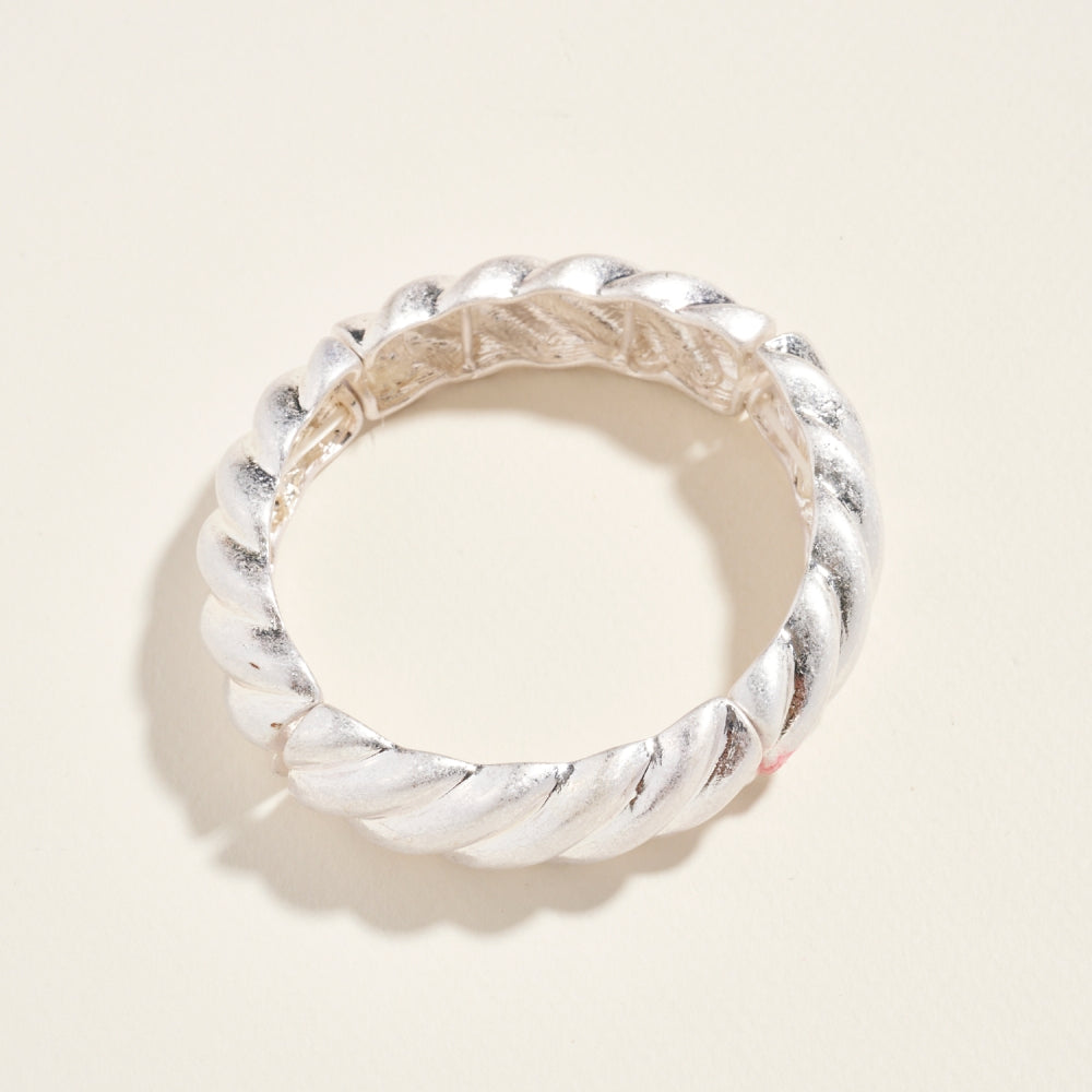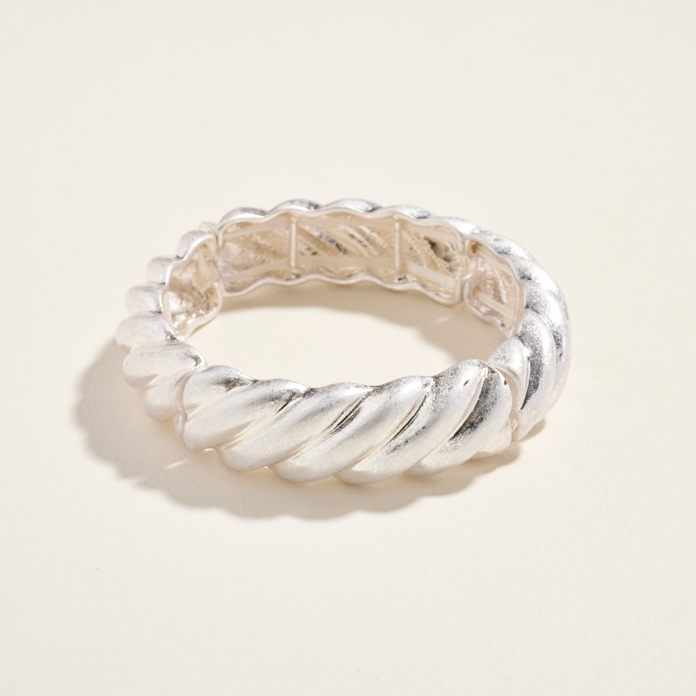 A chunky braided style adds dimension to this sleek metal bracelet. The stretch band makes it comfortable and convenient, perfect for stacking or solo wear.