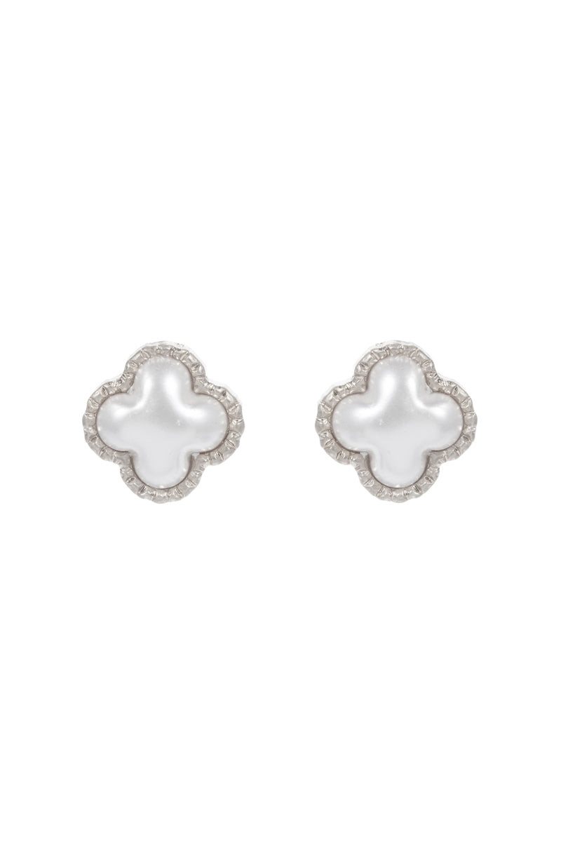 Clover Pearl Cabochon Center Pendant Post Earrings