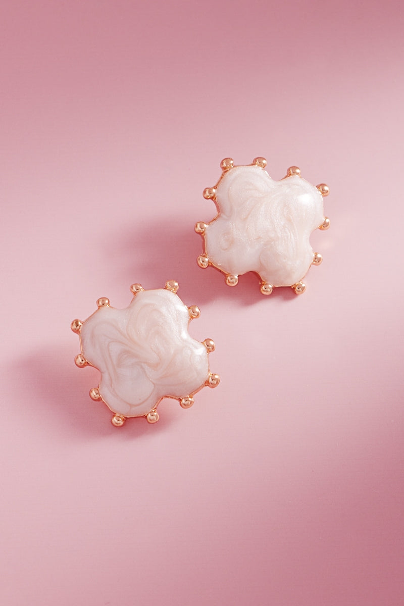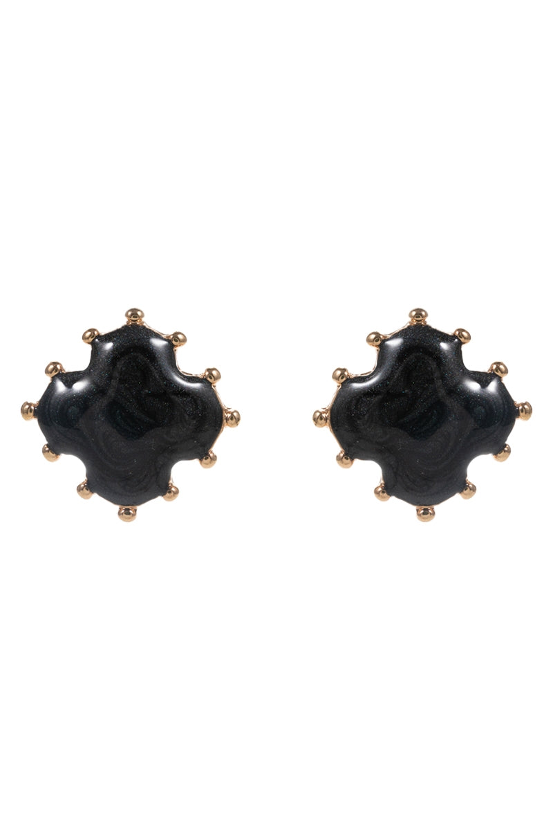 These hypoallergenic titanium post earrings feature a unique 0.75 inch clover shape with pearlized enamel and metal dots. With a professional and stylish design, these earrings are a perfect addition to any outfit. Durable and safe for sensitive skin, these earrings provide both fashion and comfort.