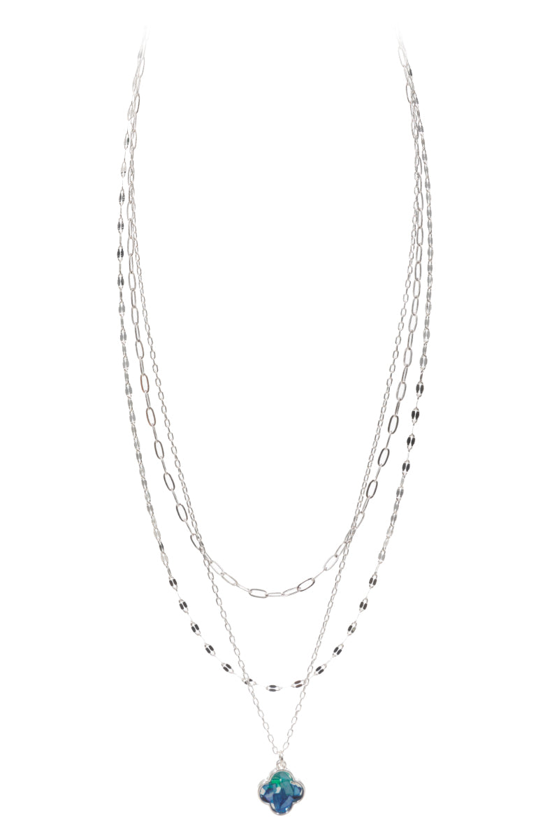 This layered necklace features a unique clover-shaped chip shell design that is available in 13, 15, and 17-inch lengths. Each necklace is carefully crafted to add a touch of elegance and style to any outfit. The perfect addition to any jewelry collection.