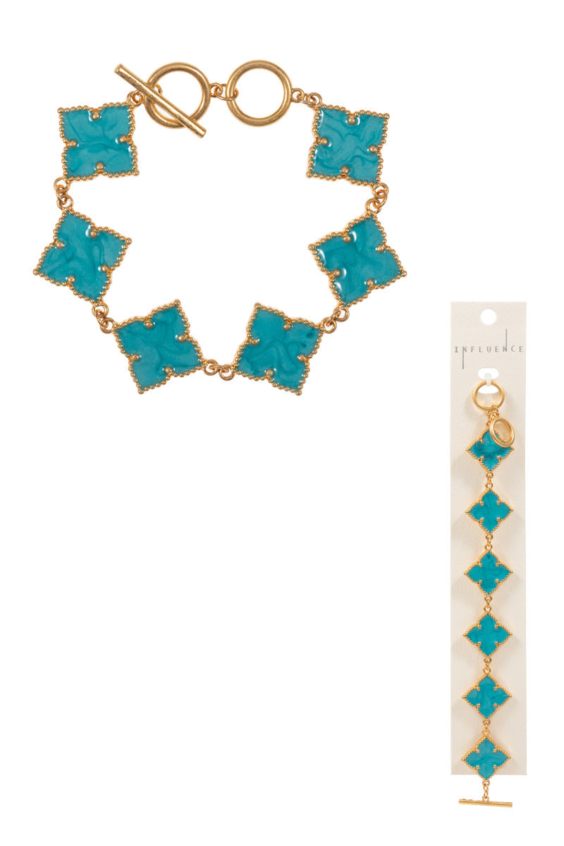 Clover Shaped Color Enamel Toggle Clasp Bracelet