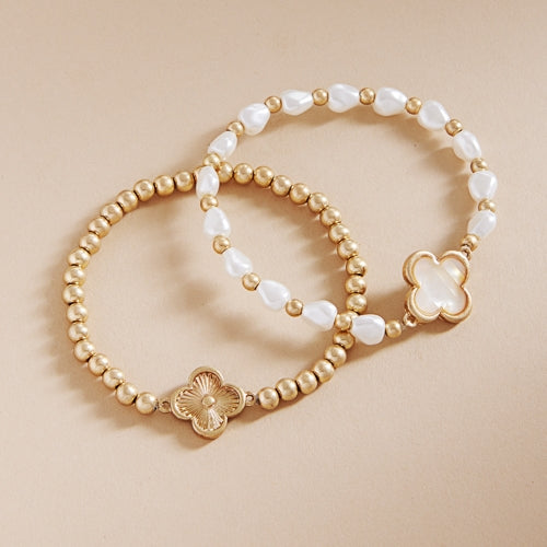 Clover Shell Effect Paper Charm Stretch Bracelet